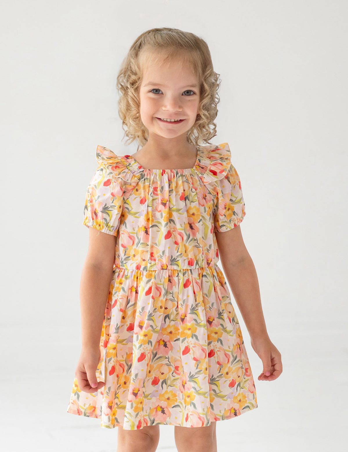 Sunkissed Apricot Short Flutter Sleeve Dress