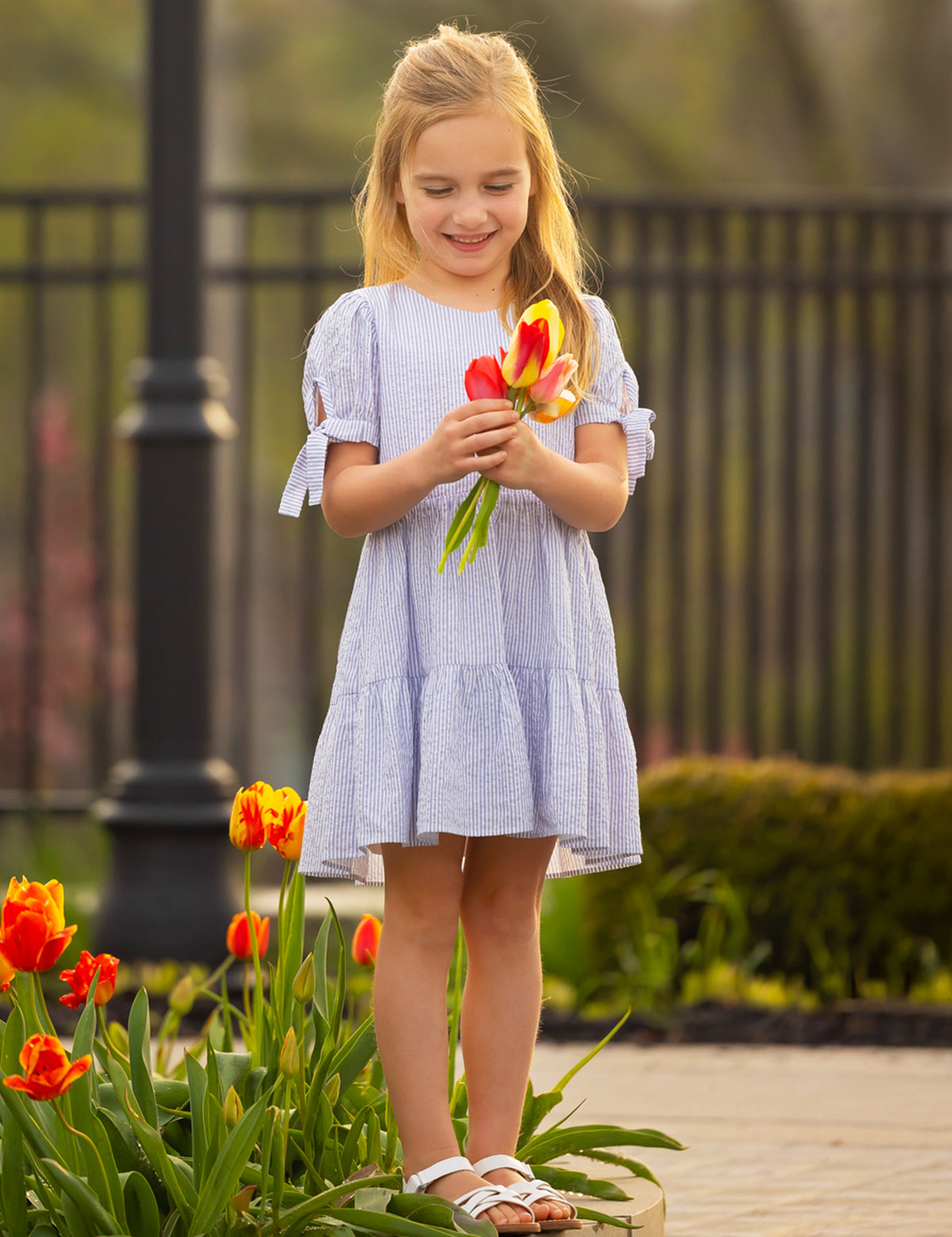 Darling Bluebell Gathered Short Sleeve with Bow Detail Dress