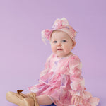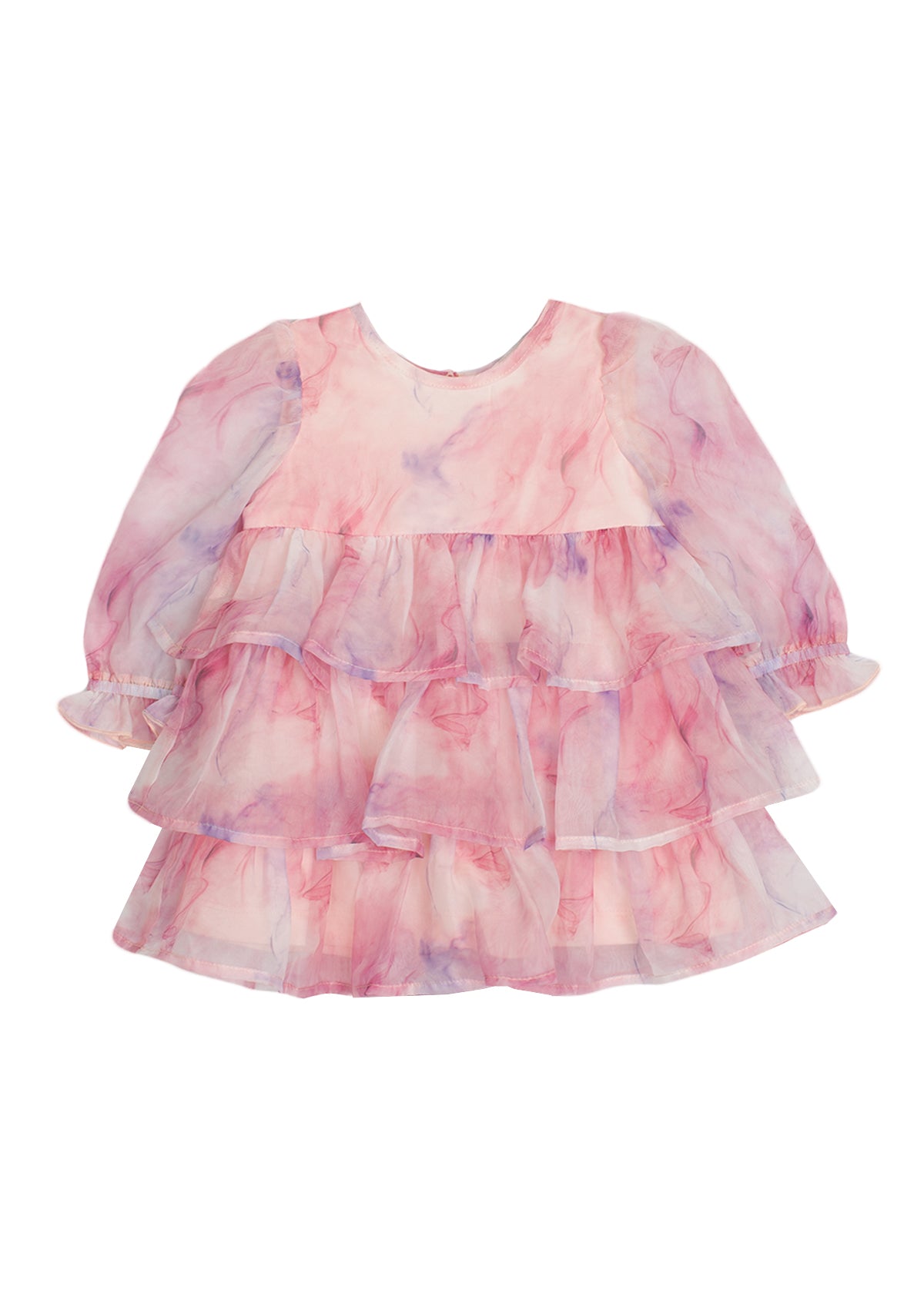 Step into a dream with the Berry Swirl Dress, featuring a whimsical blend of pink and purple hues in a watercolor print. Made from light, airy chiffon, this dress boasts a cascade of ruffled tiers that dance with every twirl.