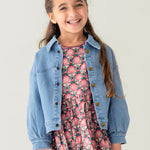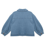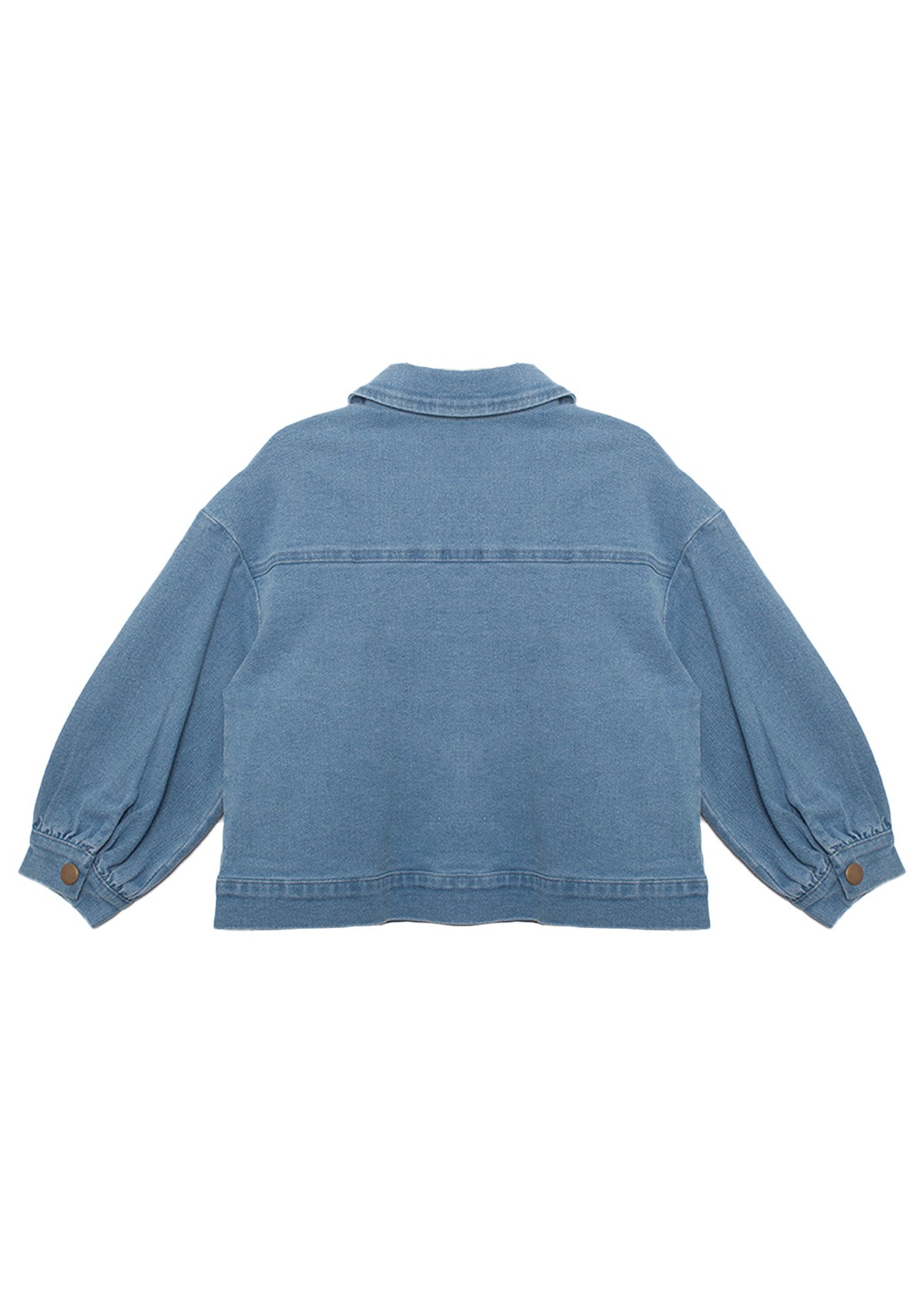This medium blue jacket features a structured fit with visible stitching, metal button closures, and collared detail. Perfect for layering, it?s a versatile piece that pairs with any outfit, adding both style and comfort to your little one?s wardrobe.