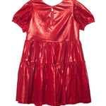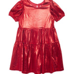 Make every occasion unforgettable with the Ruby Red Dress. Featuring short, puffed sleeves and a tiered, flared skirt, this metallic red dress shines with sophistication. The reflective finish adds a touch of glam, while the round neckline provides a classic touch. Whether it?s a festive gathering or an elegant event, this dress ensures your little one stands out beautifully!