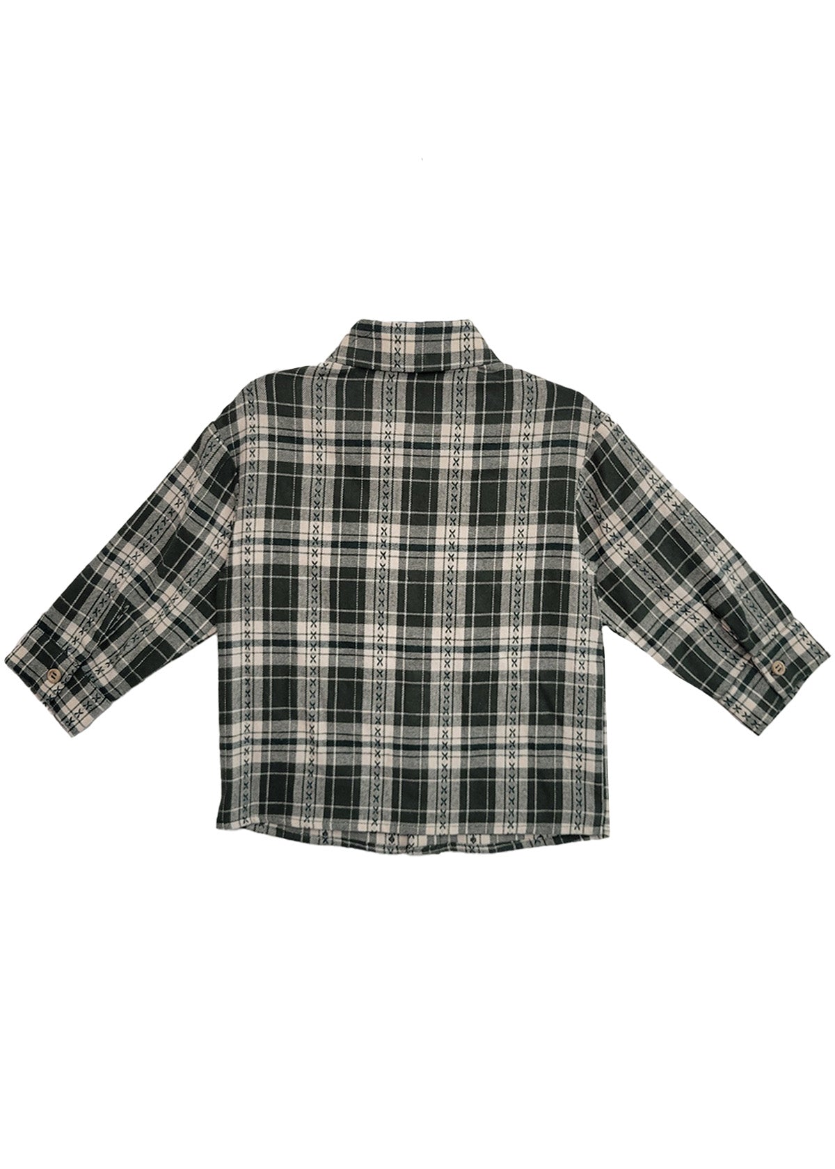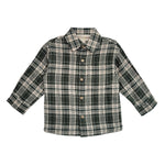 The Oliver shirt brings cozy style to your little one?s wardrobe. Featuring a classic dark green, white, and light gray plaid pattern button-up shirt with a smart chest pocket adds a thoughtful touch to this versatile, long-sleeve top.