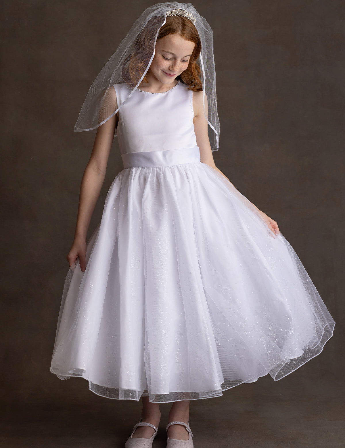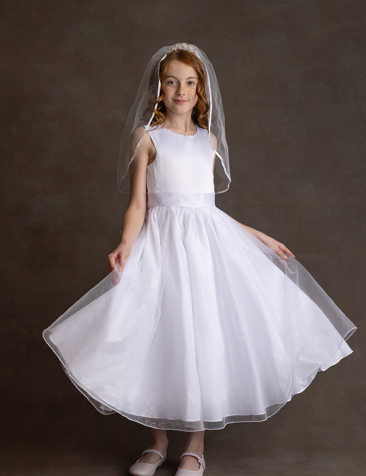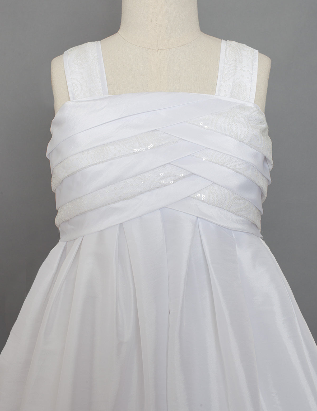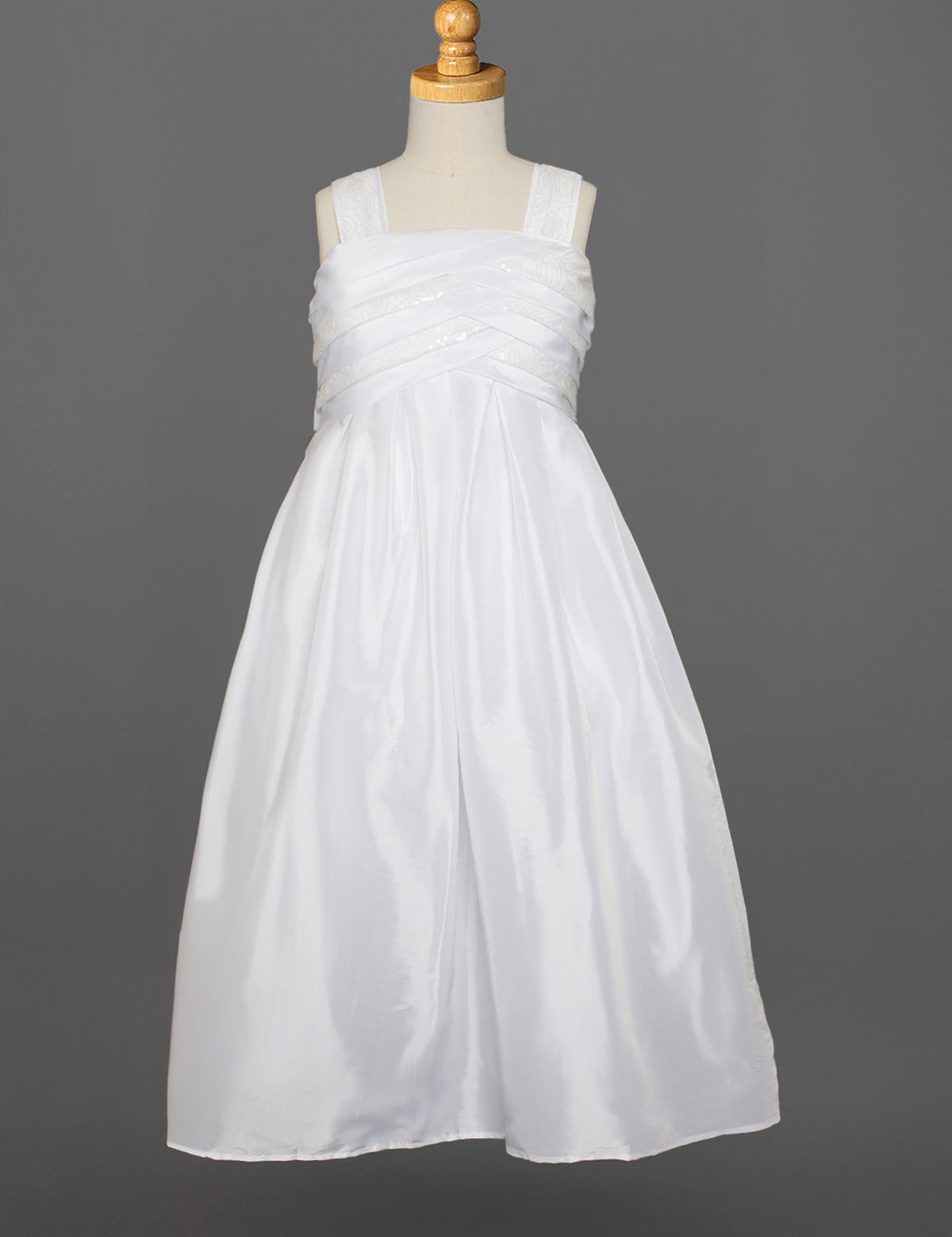 Criss-Cross Bodice Communion Dress in Taffeta and Sequin Fabric