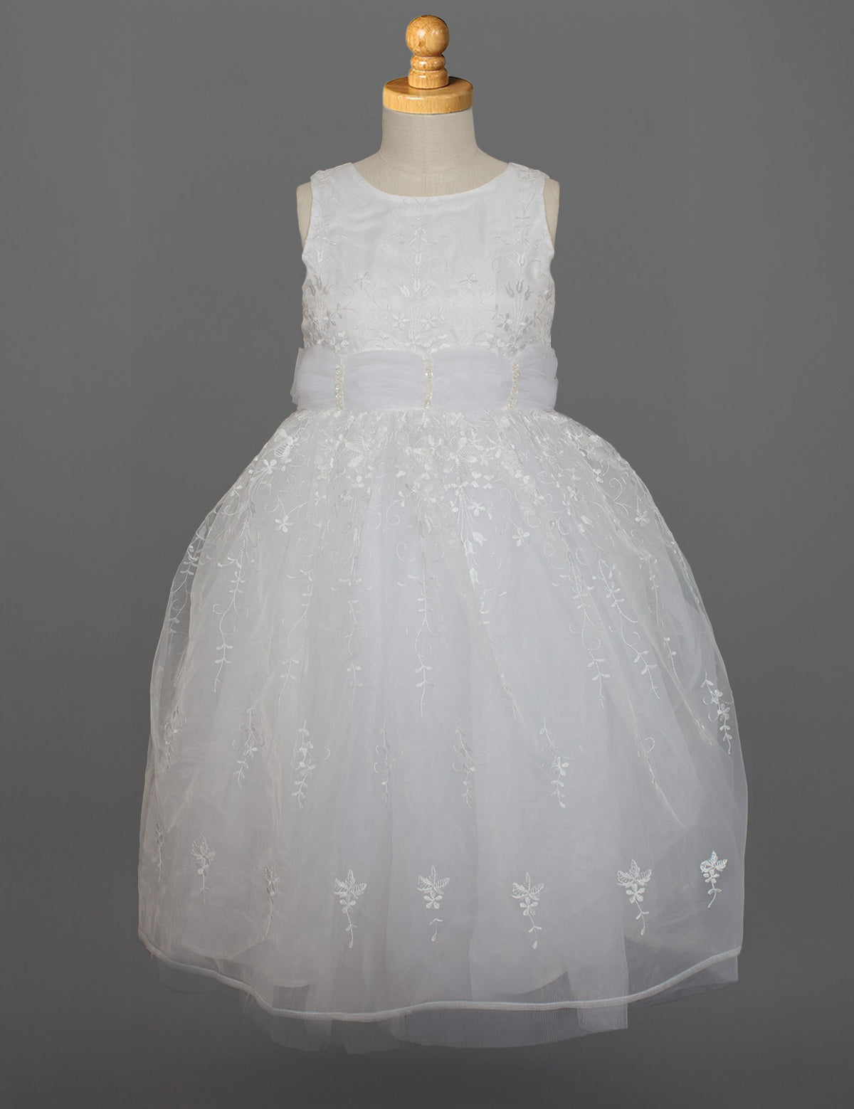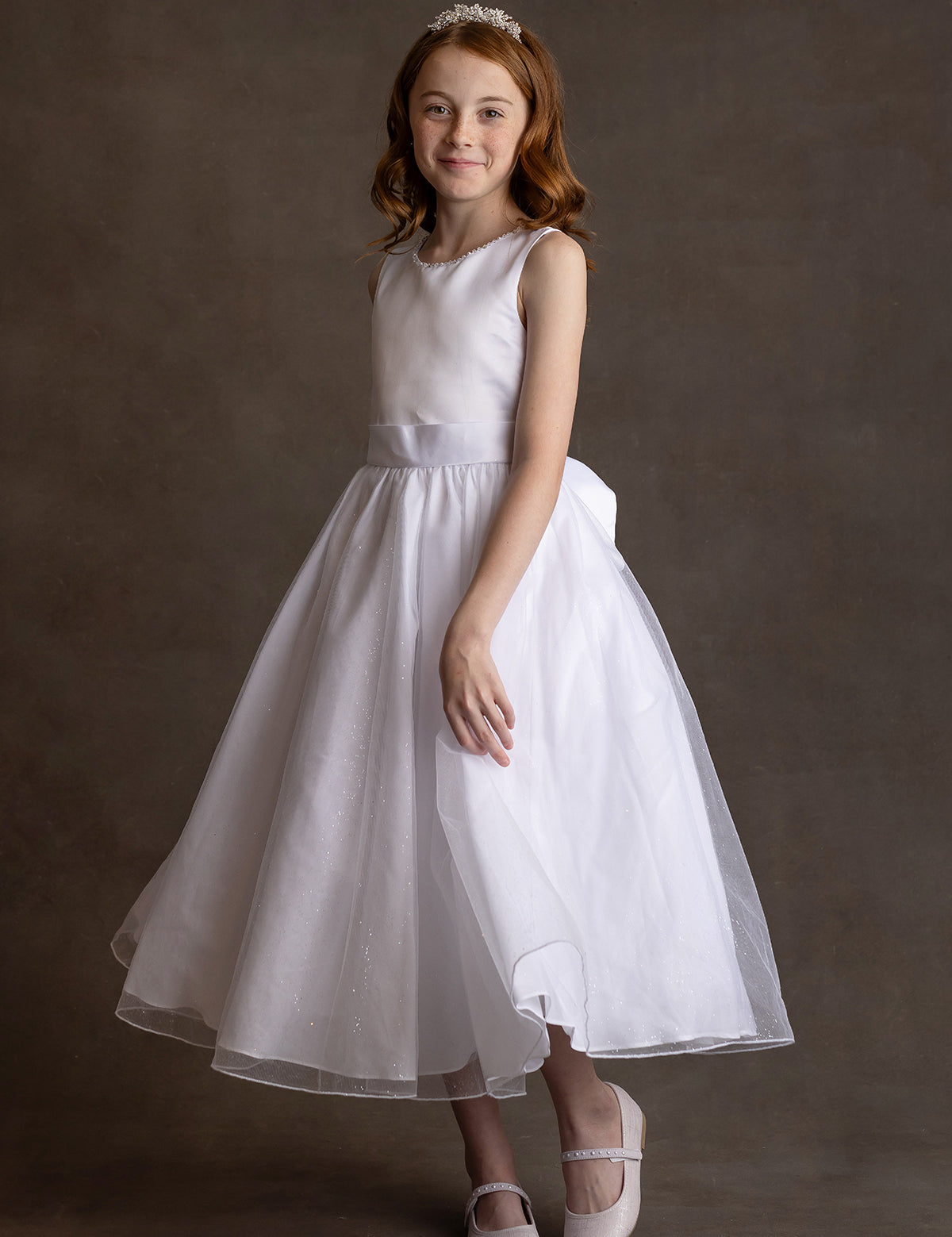 Sleeveless Organza Communion and Flower Girl Bow Dress