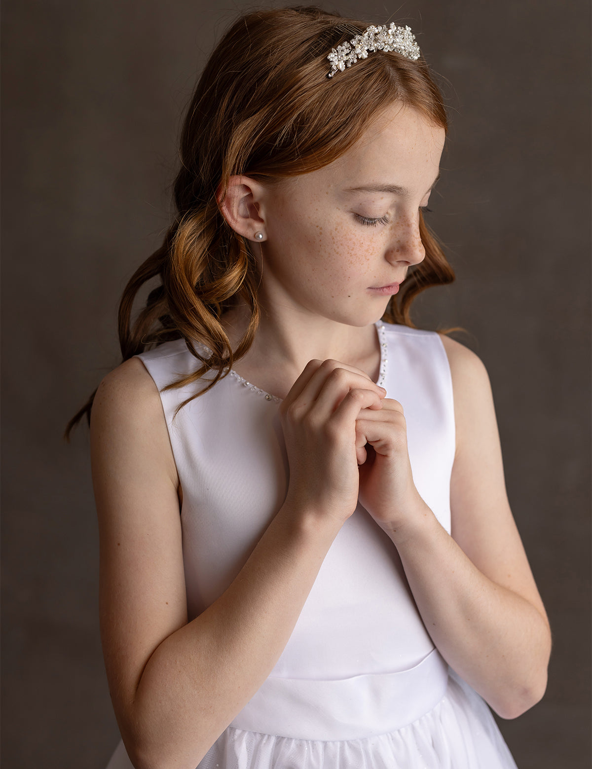 Empire Waist Communion Dress with Hand Beaded Pearl Embellishments