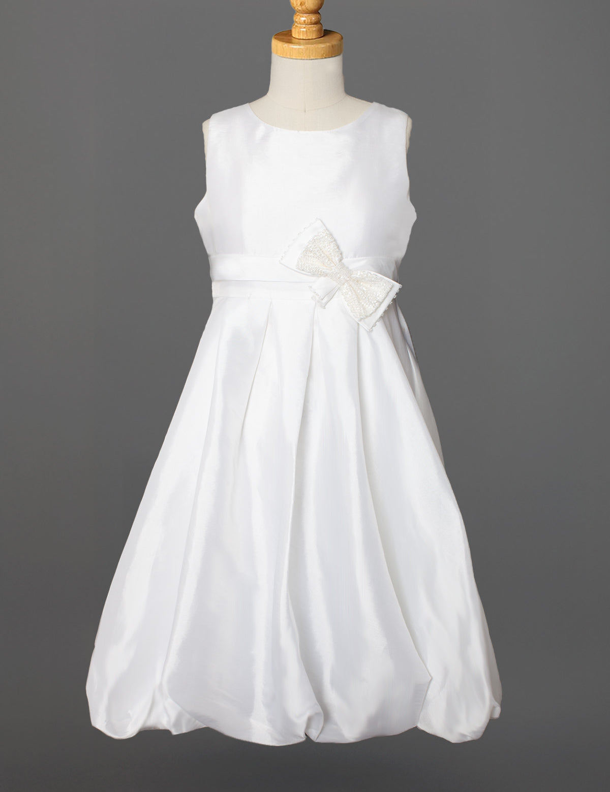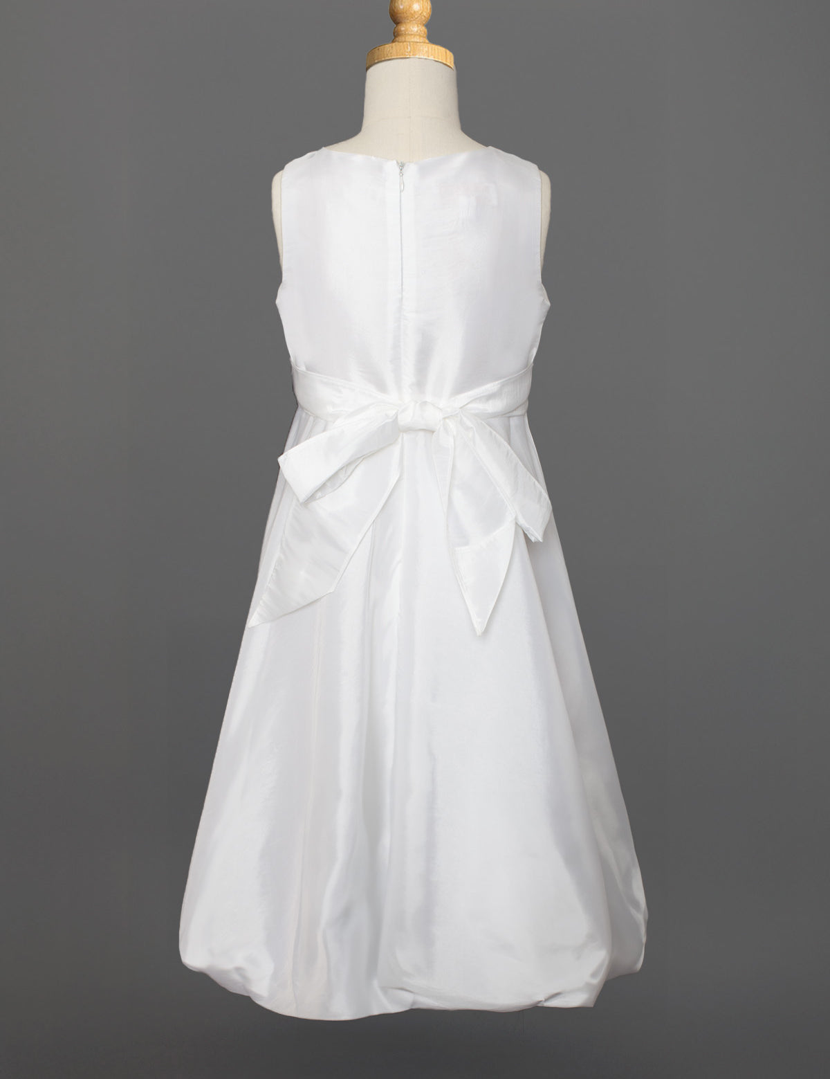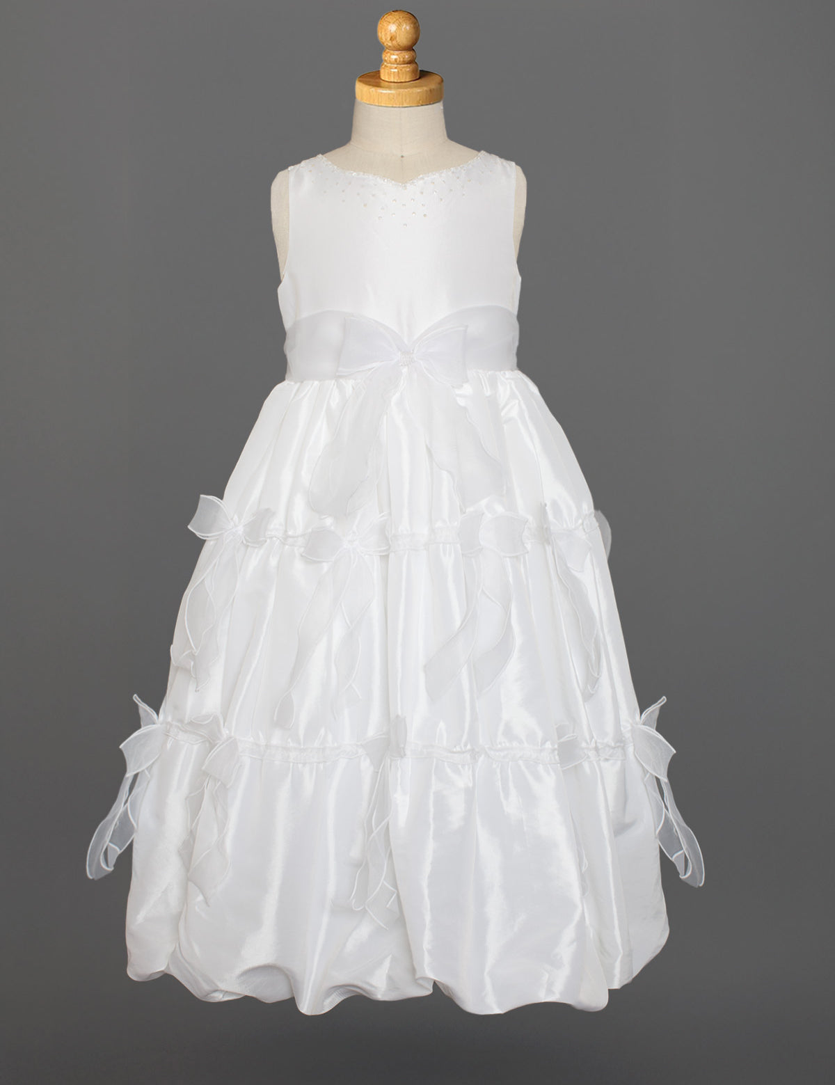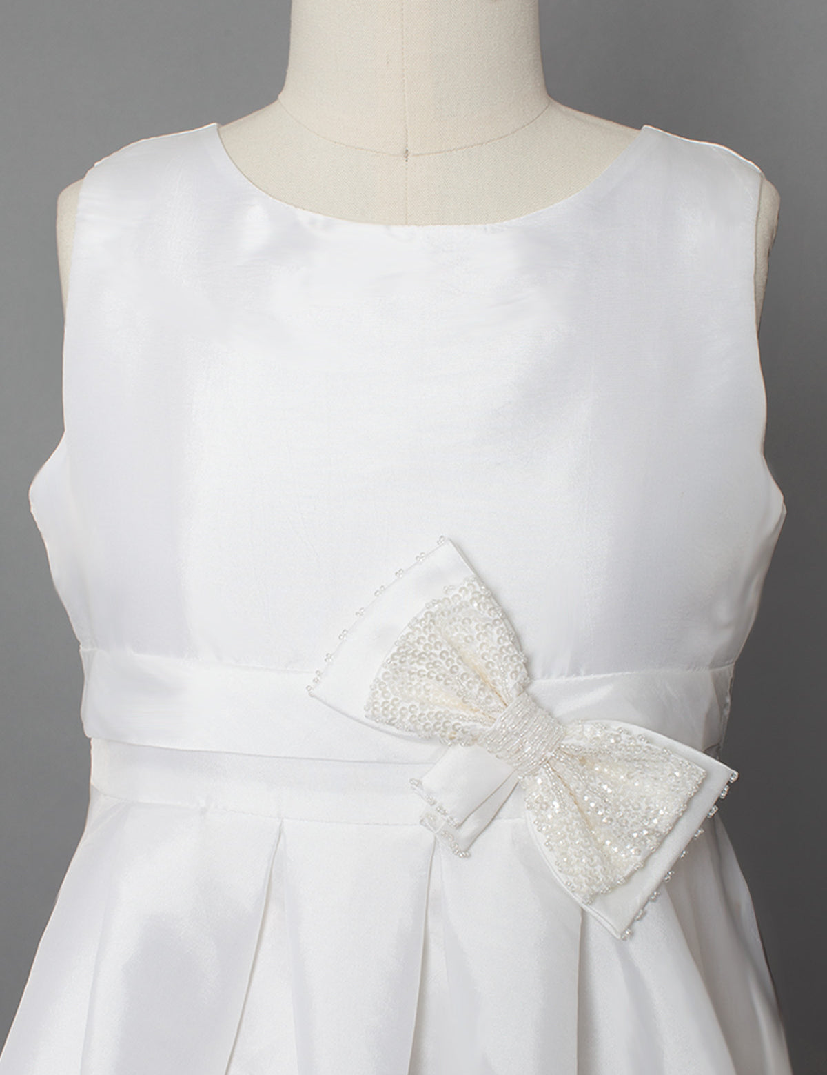 Taffeta Bow Communion Dress w/ Beaded Pearl Neckline