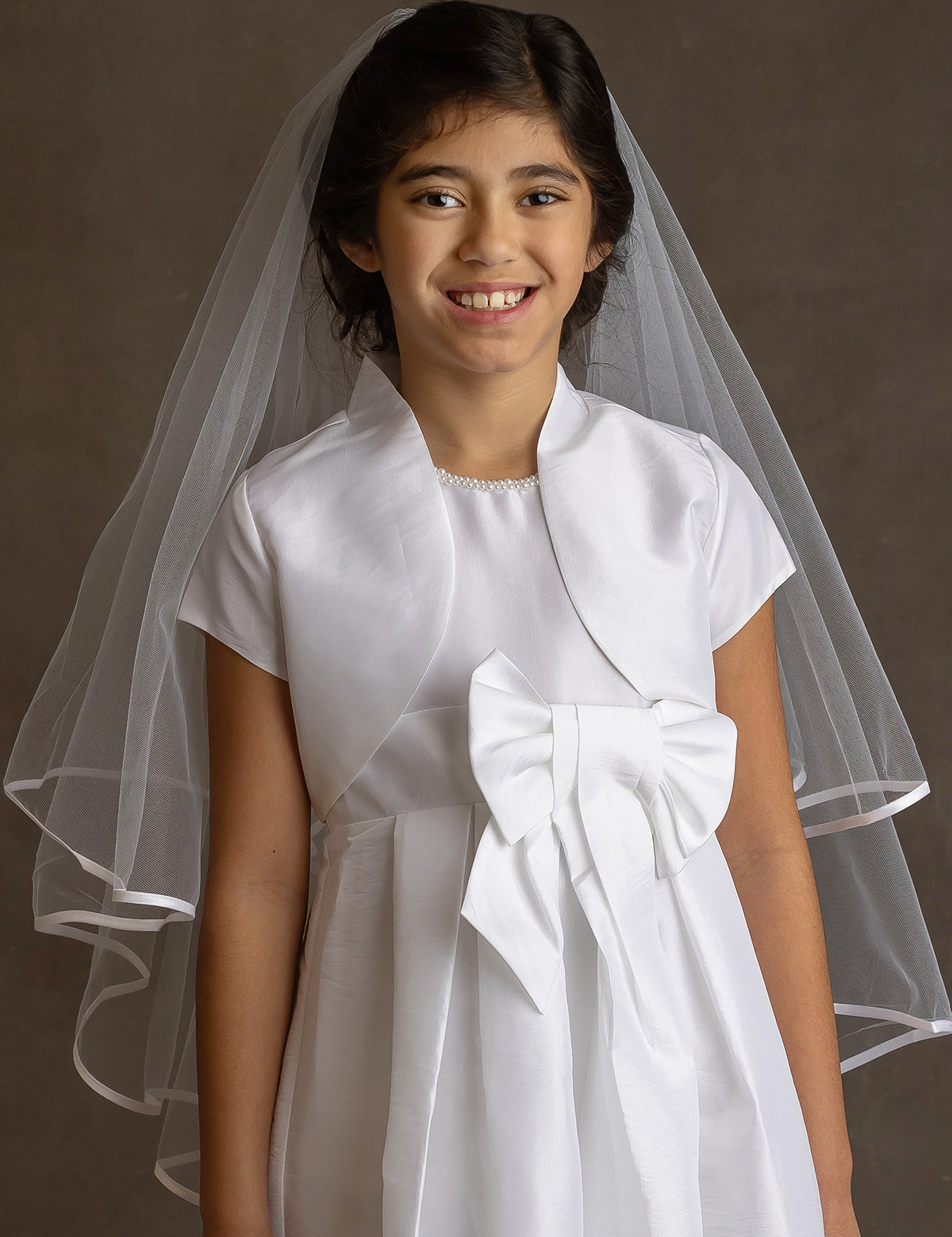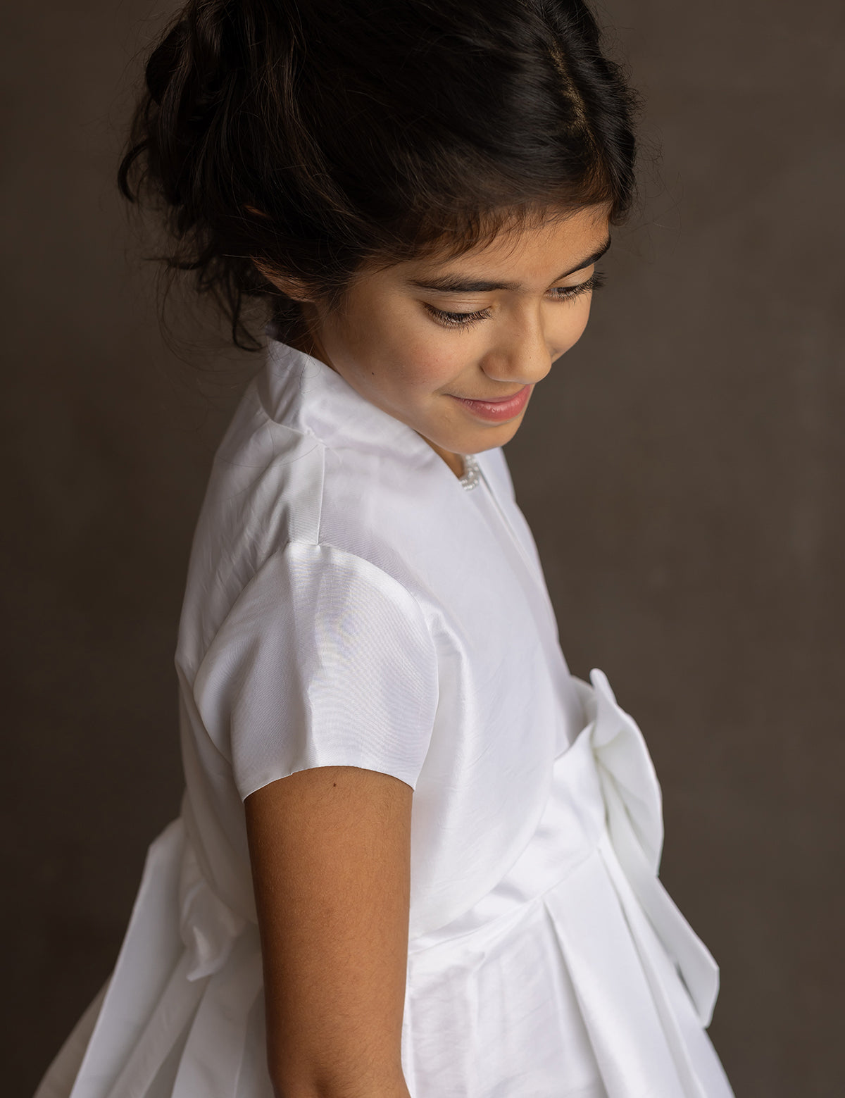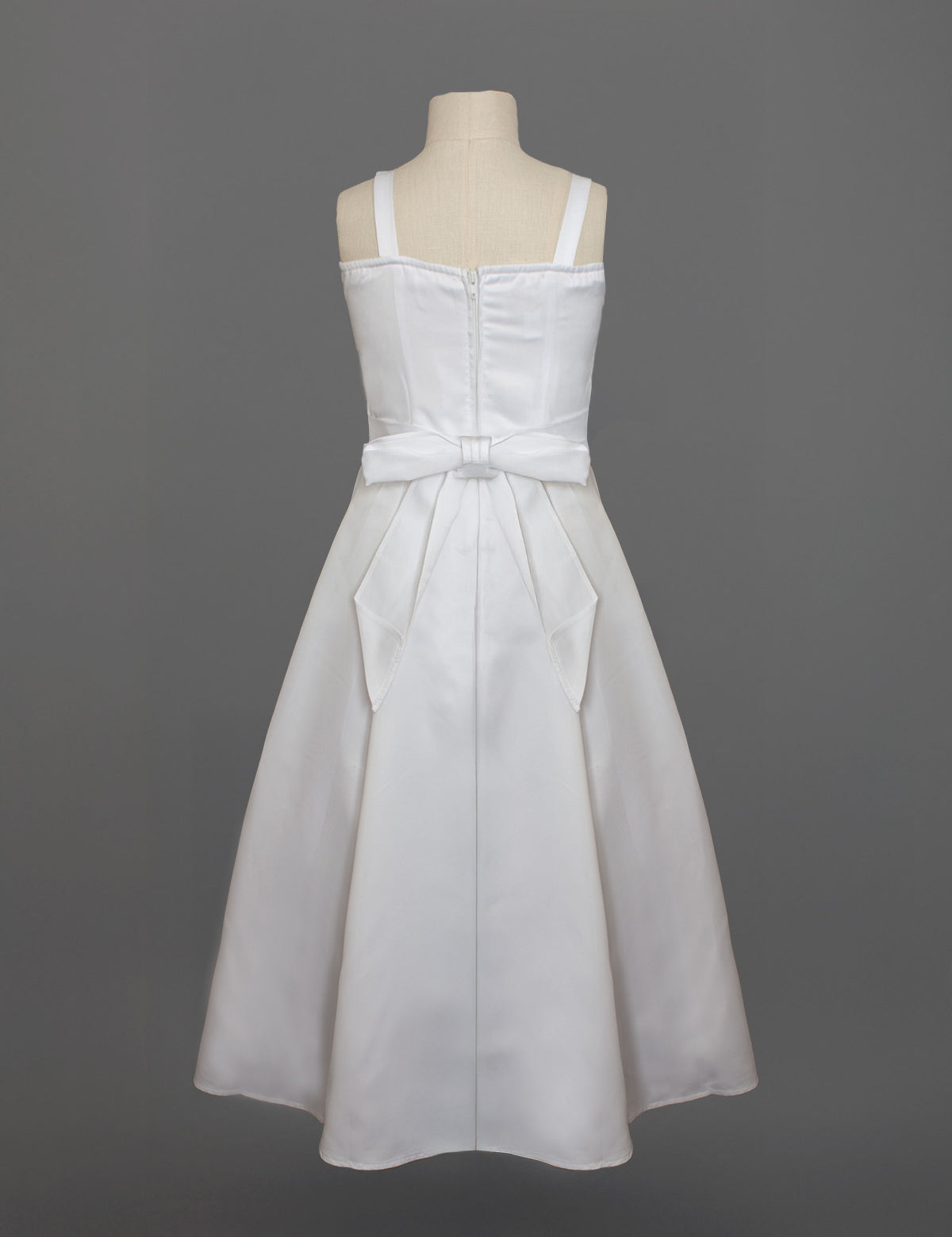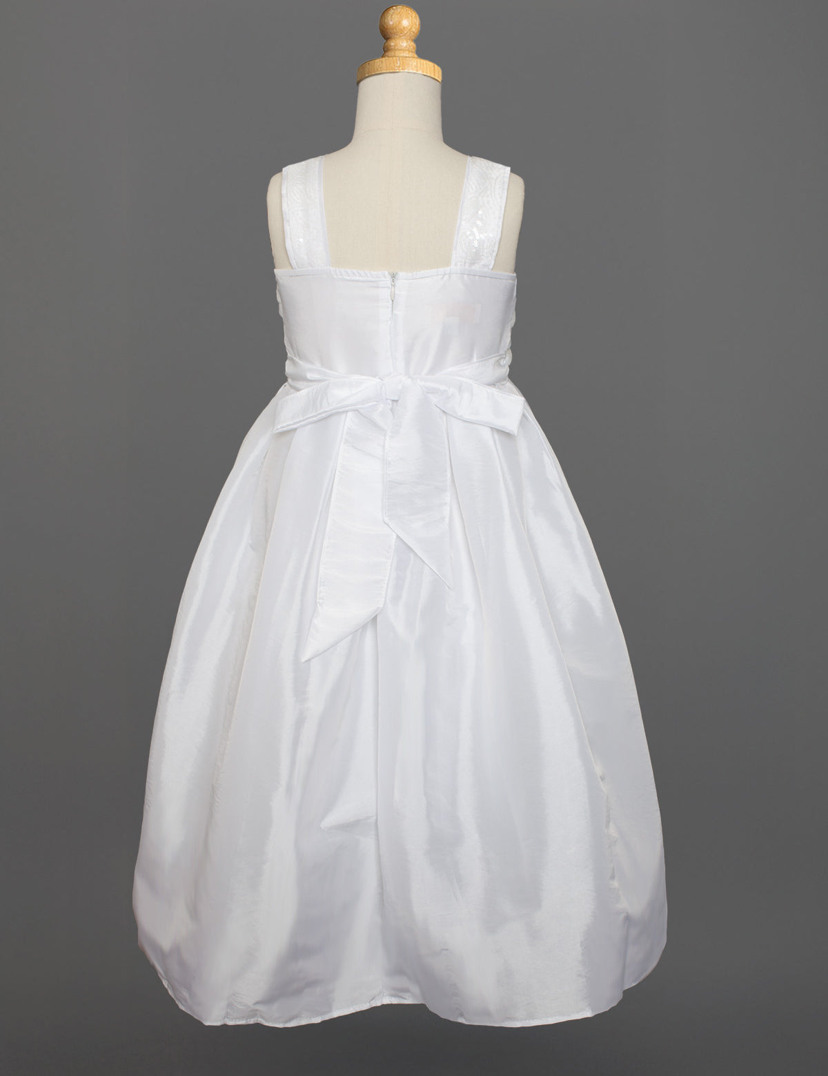 Taffeta Bow Communion Dress w/ Beaded Pearl Neckline