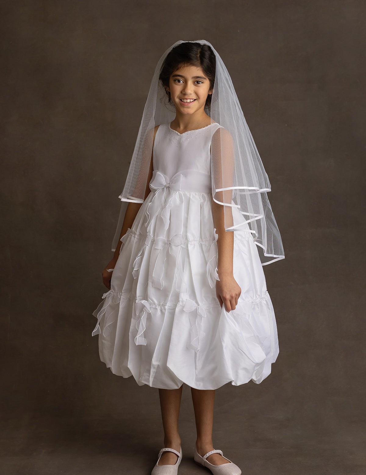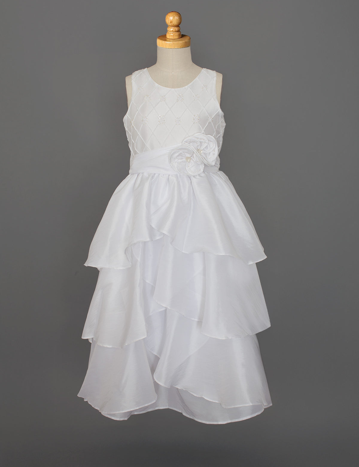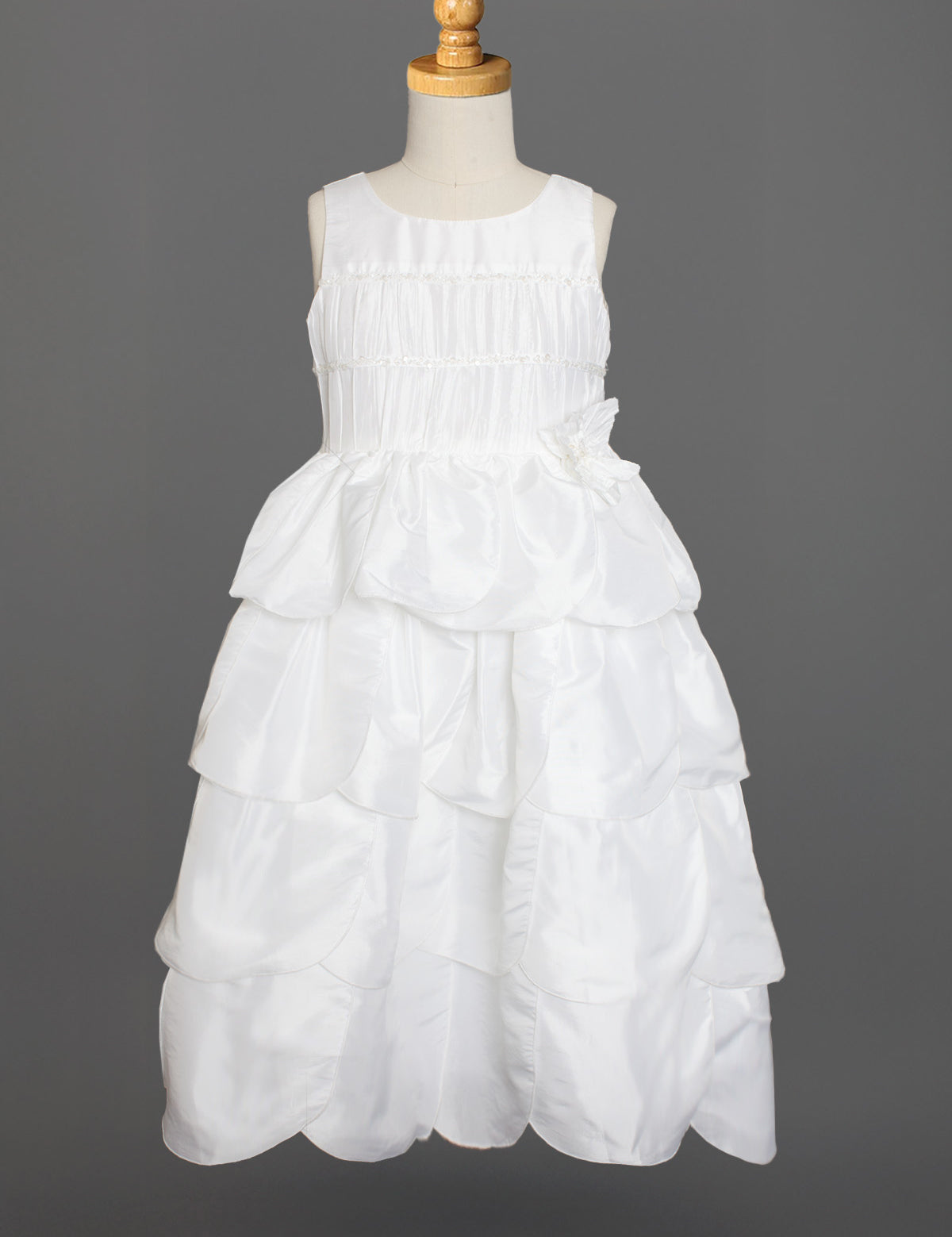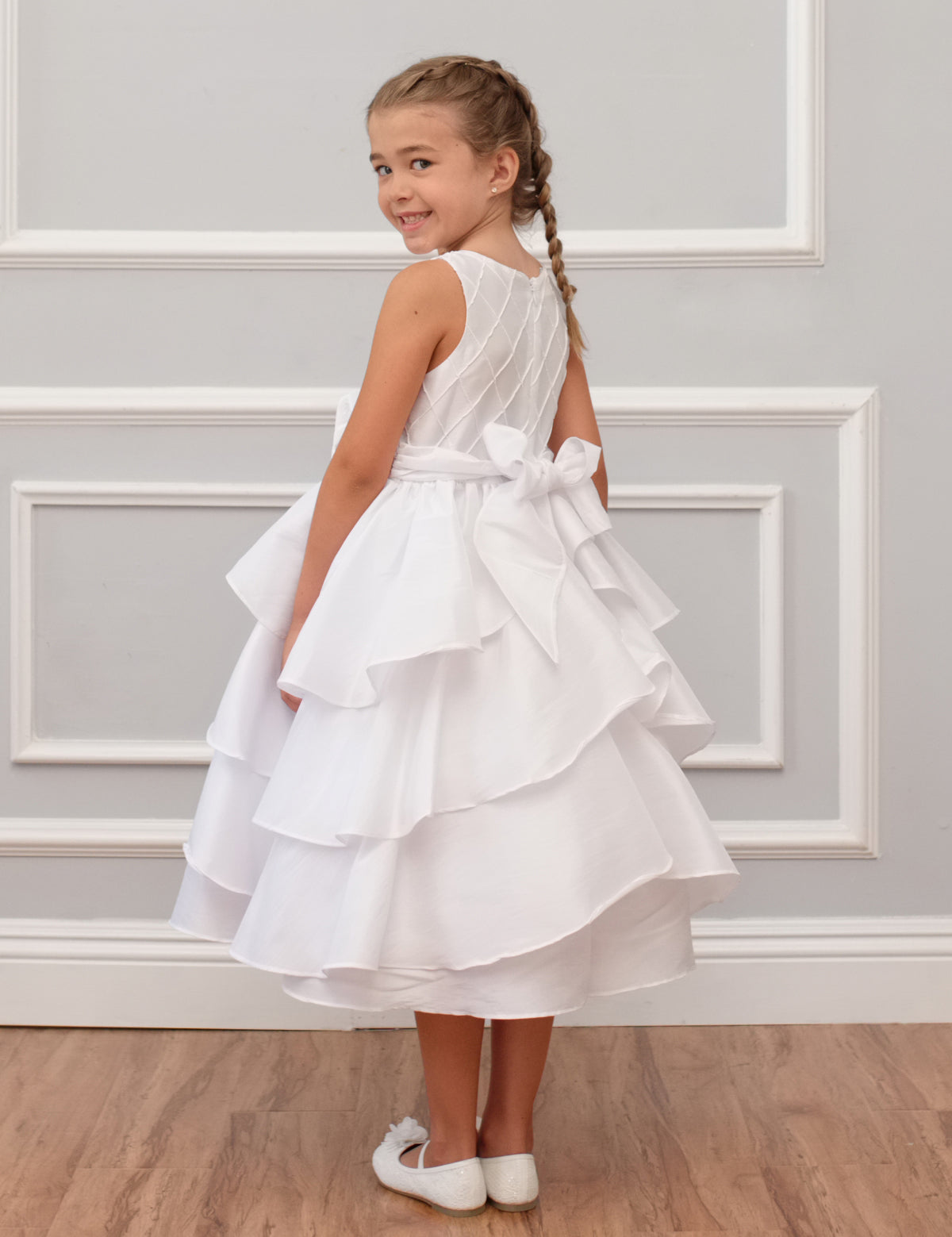 Taffeta Tiered Scallop Communion Dress w/ Hand Beaded Details