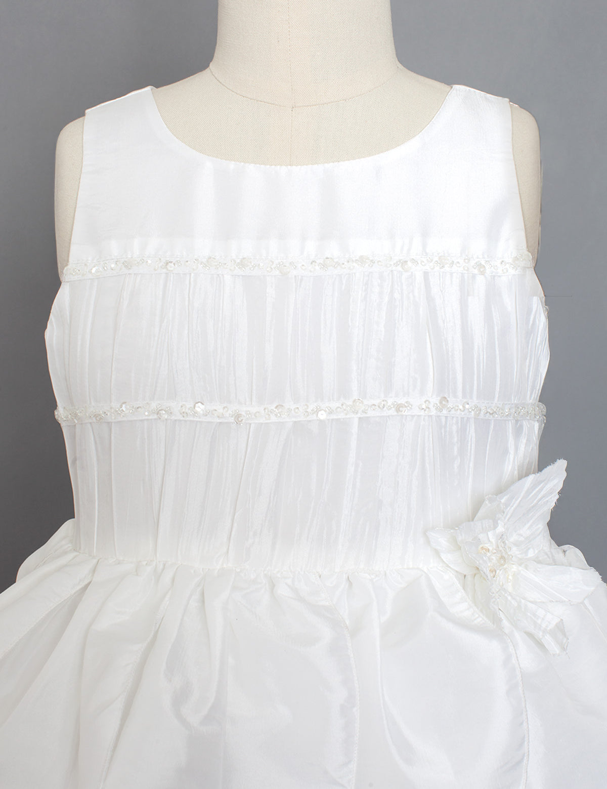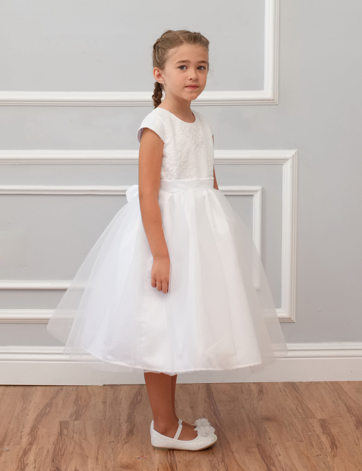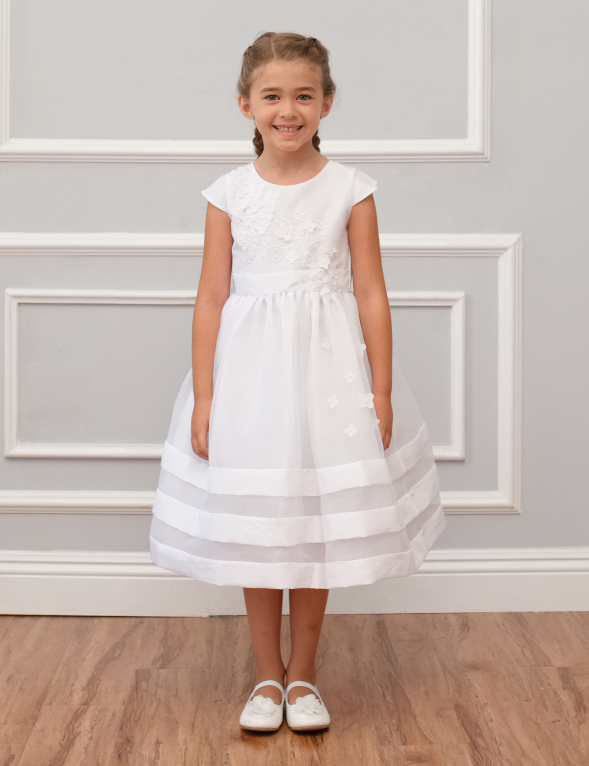 Taffeta Capped Sleeve Communion Dress with Flower Petal