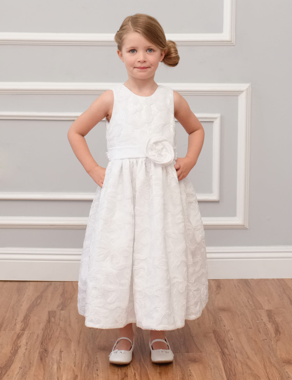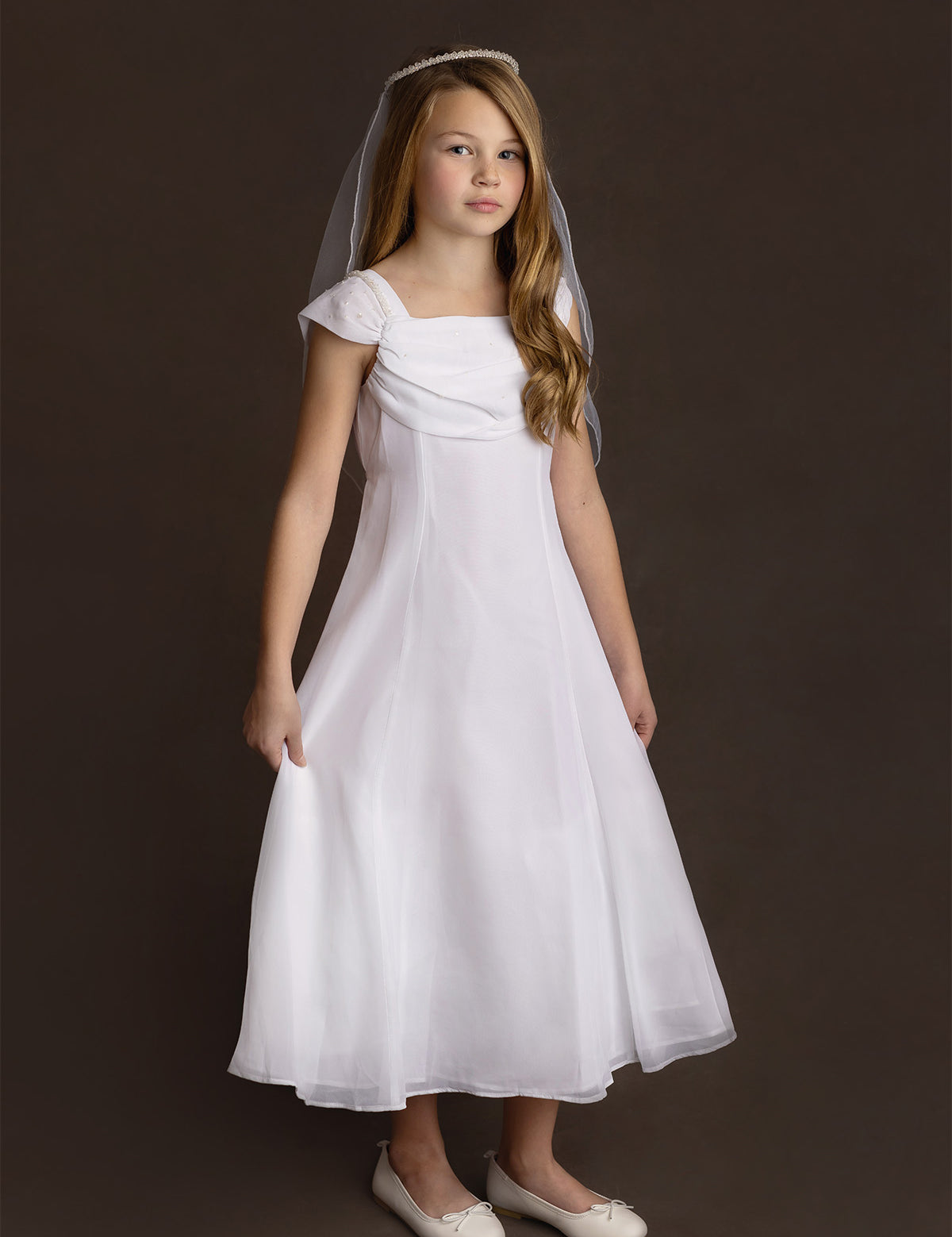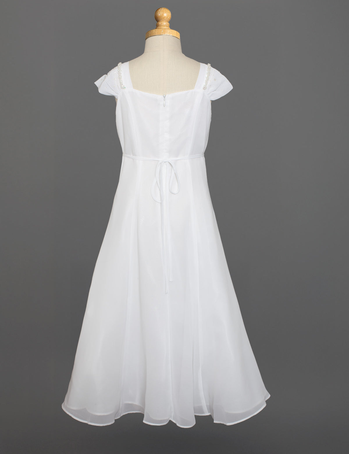 Chiffon Communion Dress w/ Beaded Shoulder Detail