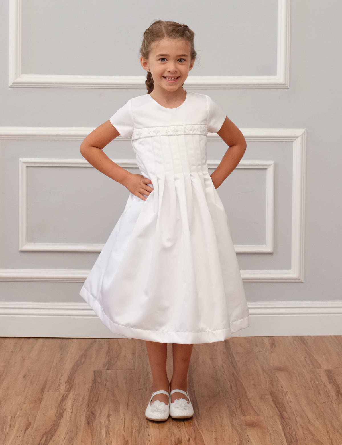 Taffeta Pleated Communion Dress with Beaded Cross Detail