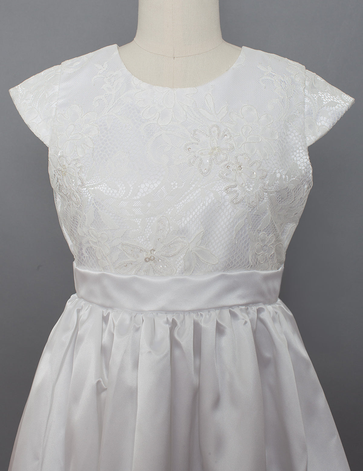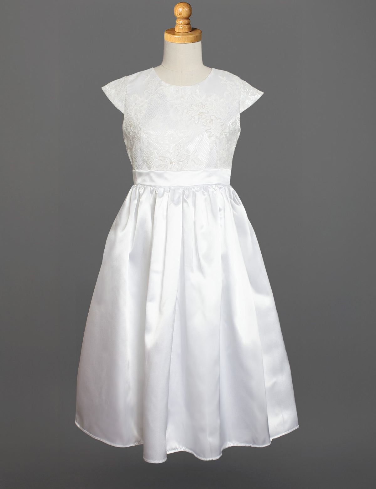 Satin and Lace Bodice Communion Dress w/ Hand Beaded Embellishments