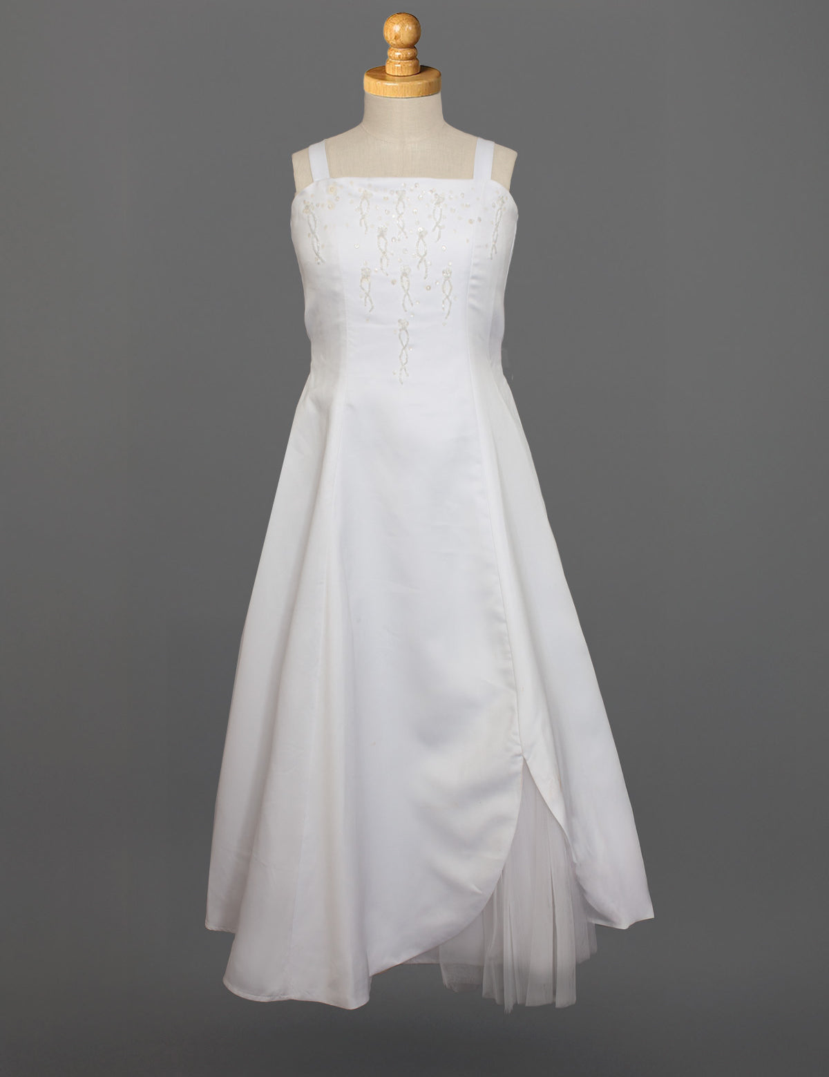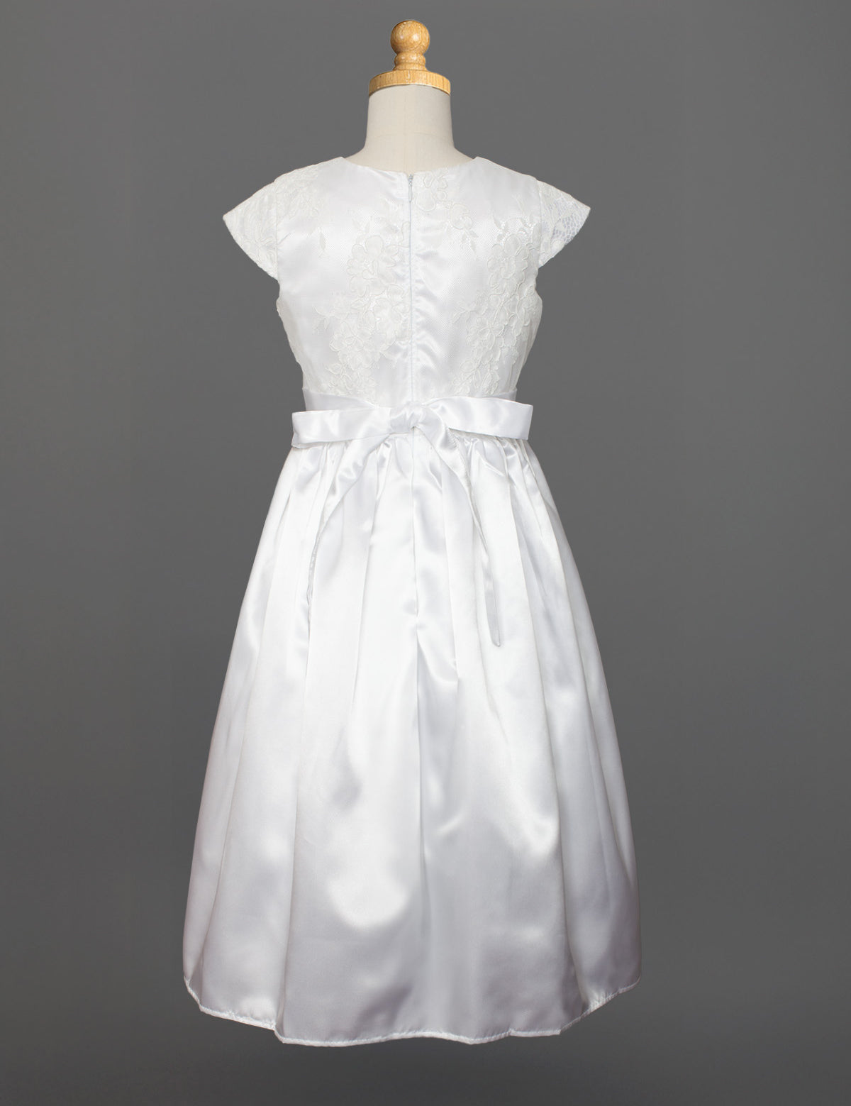 Satin A-Line Communion Dress w/ Hand Beaded Embellishments