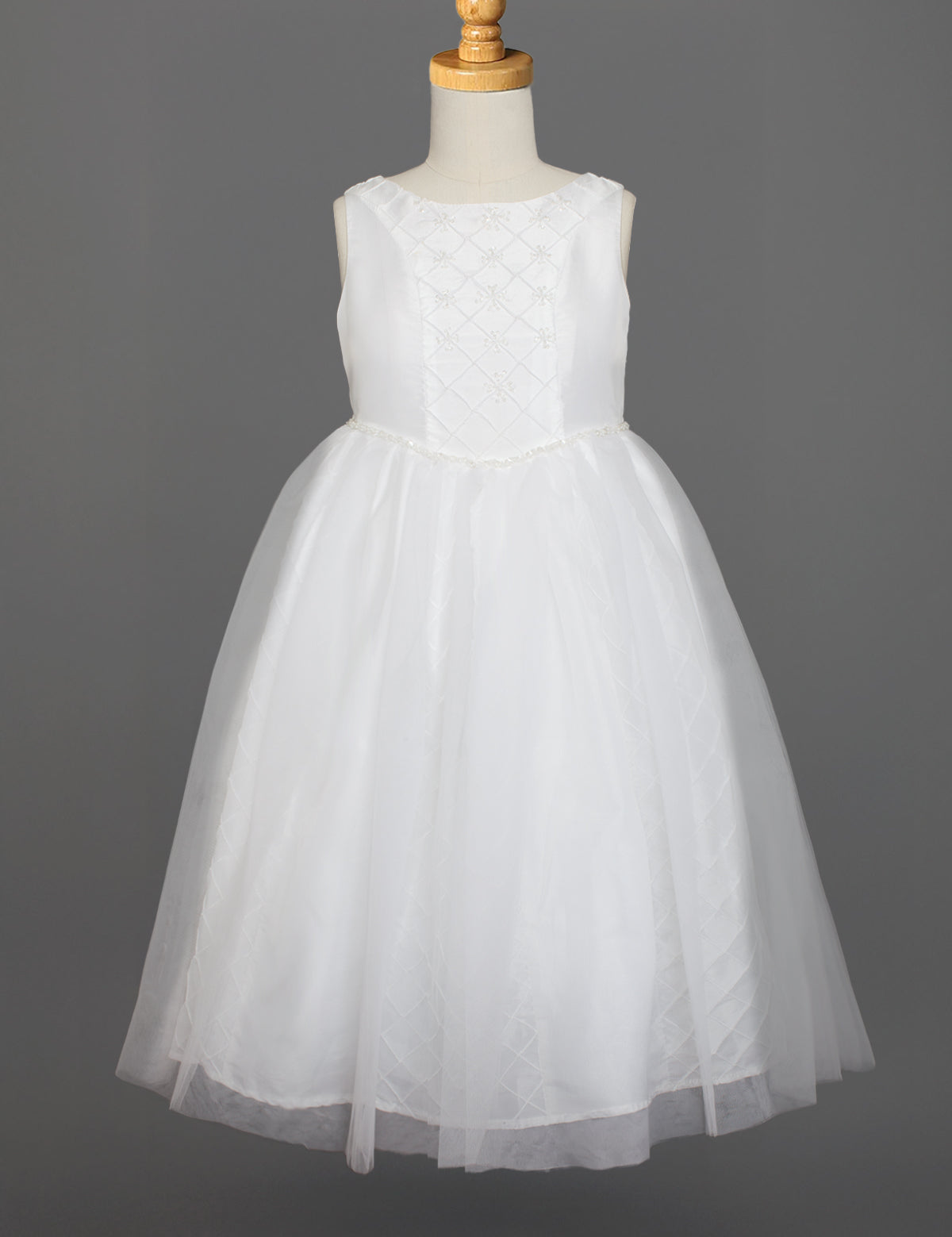 Stain A-Line Communion Dress w/ Hand Beaded Embellishments