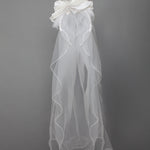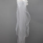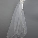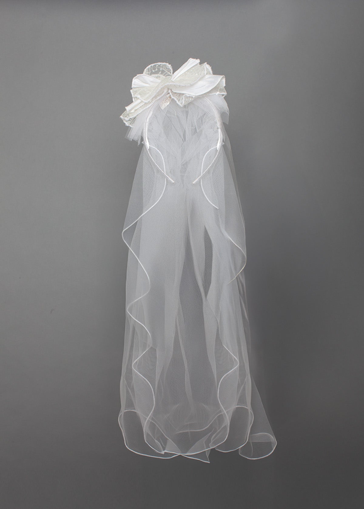 Your little girl's day will look special with this communion-tiered headband veil. This headband is also adjourned with a pearl edge floral detail for that extra touch of cuteness.