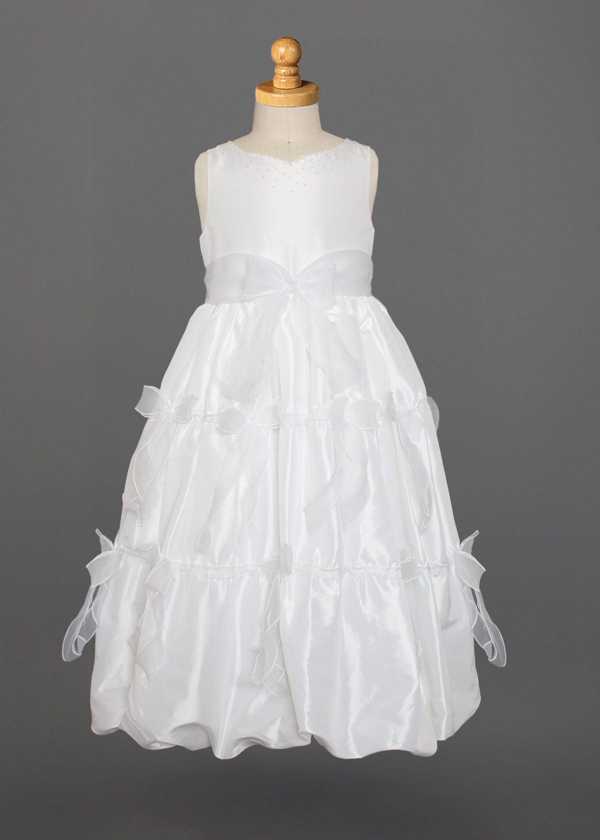 Taffeta Communion Dress w/ Organza Bow & Hand Beading Detail