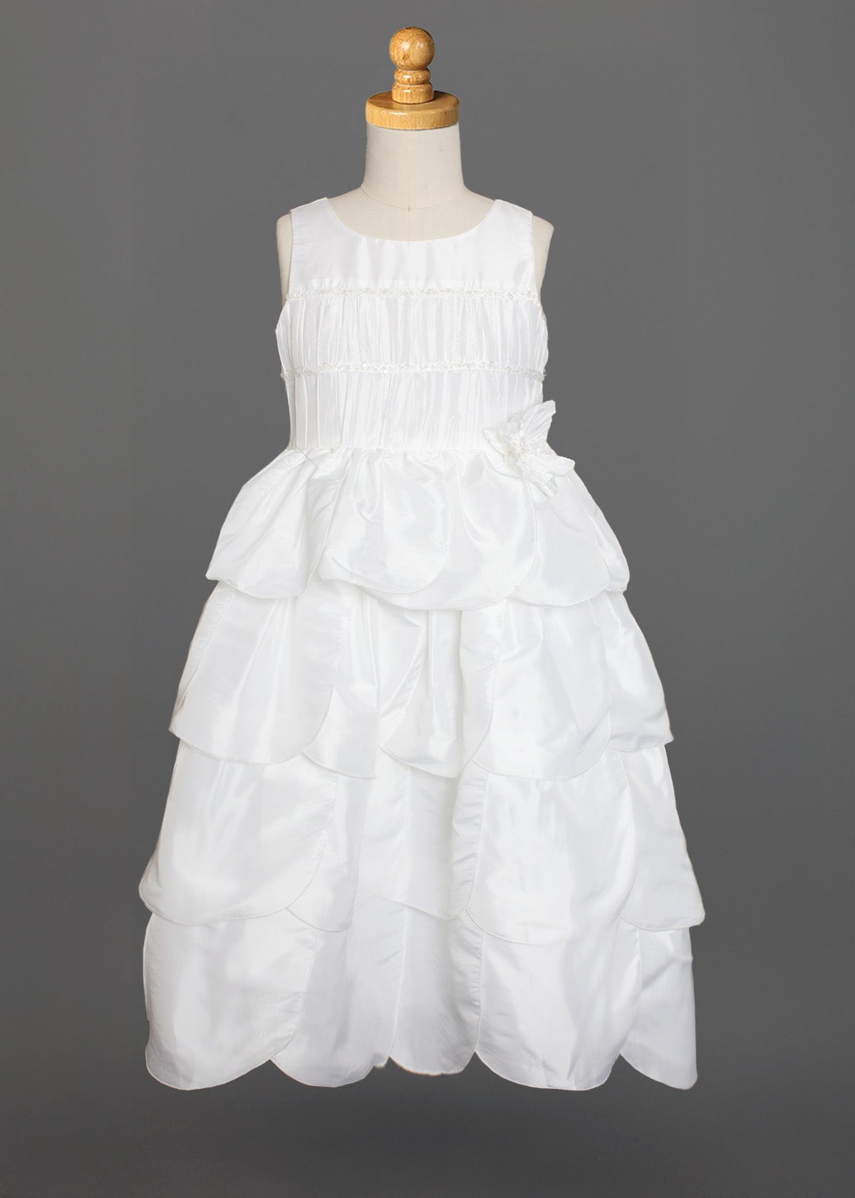Taffeta Tiered Scallop Communion Dress w/ Hand Beaded Details