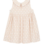 This girls' dress in a soft beige hue features a delicate white daisy print for a timeless look. Designed with a classic Peter Pan collar and a gently gathered waist, it offers a breezy, comfortable fit. The sleevelessdesign makes it perfect for warm days, while the button-back closure ensures easy dressing.