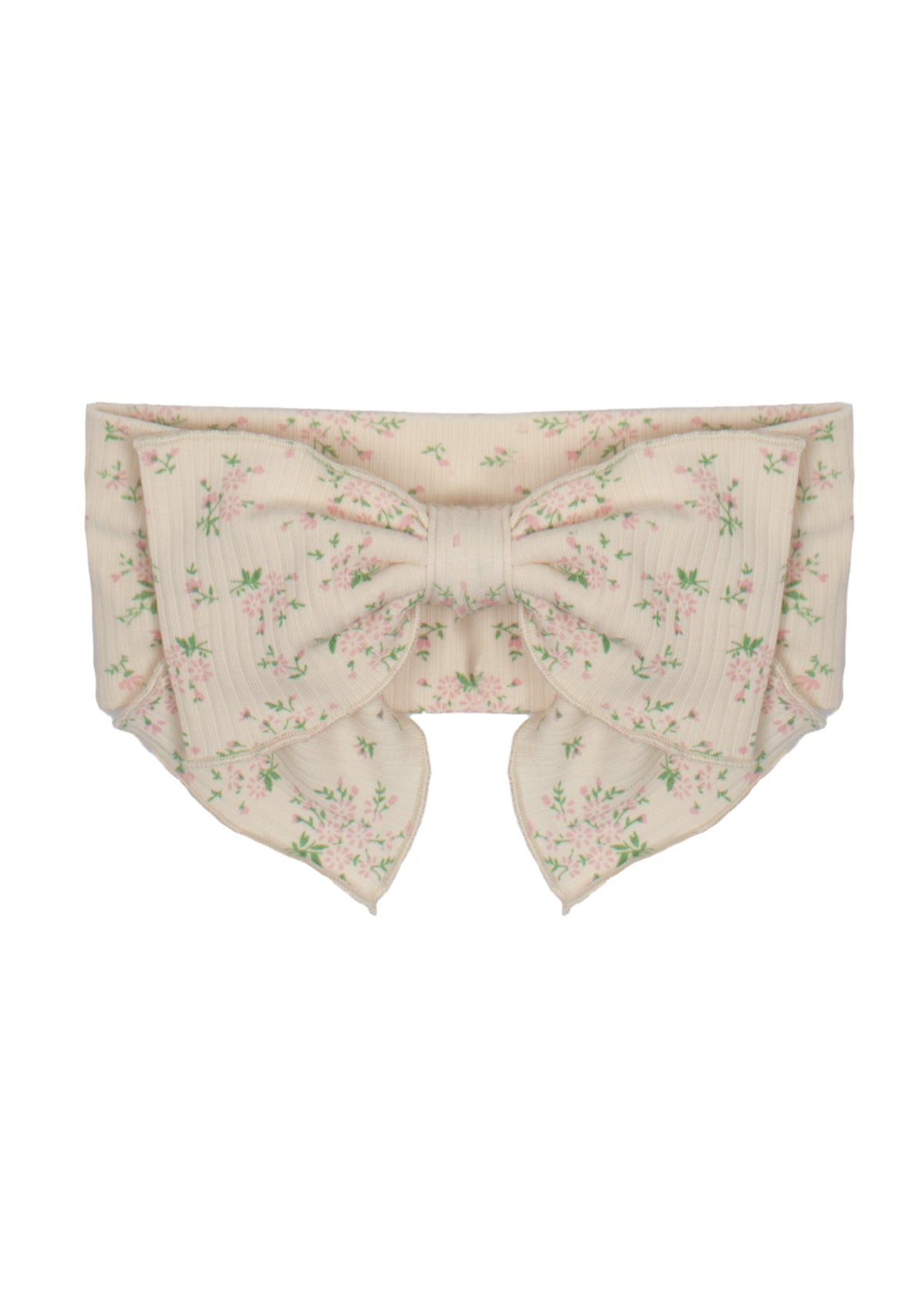 This adorable hair accessory showcases a delicate floral print in soft pink and green hues on a cream backdrop. The large, structured bow adds a playful touch, while the elasticated band ensures a secure fit. Perfect for adding a charming detail to any outfit, this bow is both stylish and comfortable.