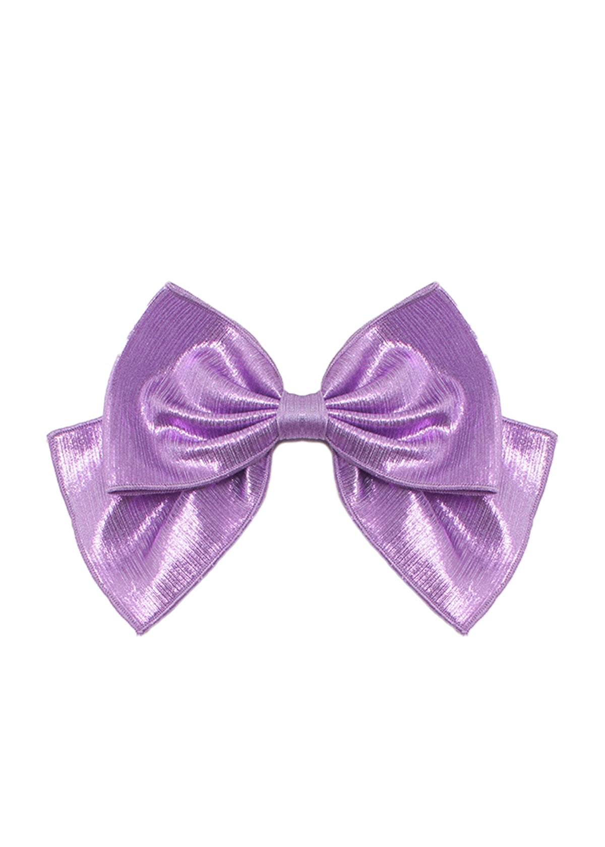 Glam up your hairstyle with the Glitterball hair accessory! This oversized bow, crafted from glossy satin-like fabric, showcases a shimmering metallic lavender hue that reflects light beautifully. Perfect for special occasions or a standout everyday look, its classic double-loop design and cinched center add an elegant charm to any outfit. A must-have for girls who love bold, playful style!