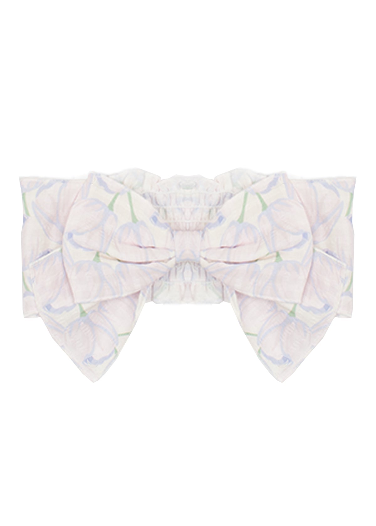 Complete her look with this elegant pastel-print headband in soft lavender and green hues. Featuring a beautifully structured oversized bow, this accessory adds a sophisticated touch to any outfit. The stretchy band ensures a secure yet comfortable fit, making it perfect for special occasions or everyday wear with effortless style.