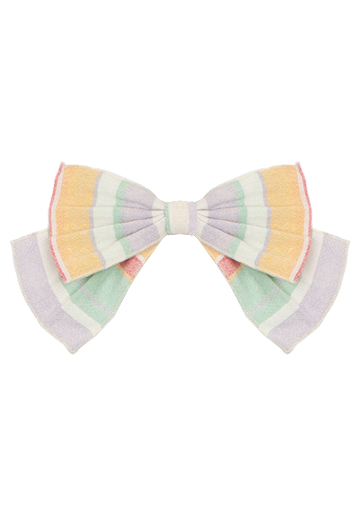 This elegant girl's hair accessory features a large bow in a warm, dusty rose hue. Crafted with a delicate texture, the bow is set on an elasticized band for a secure and comfortable fit.