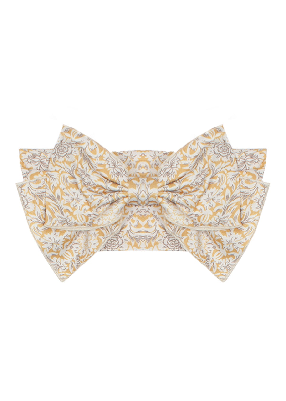 This elegant hair accessory features a classic paisley design in warm mustard and soft gray tones, perfect for adding a vintage touch to any outfit. The large bow is crafted from a lightweight, breathable fabric that ensures comfort while maintaining its structured shape. Ideal for both casual and formal occasions, this bow adds a refined charm to your little one's look.