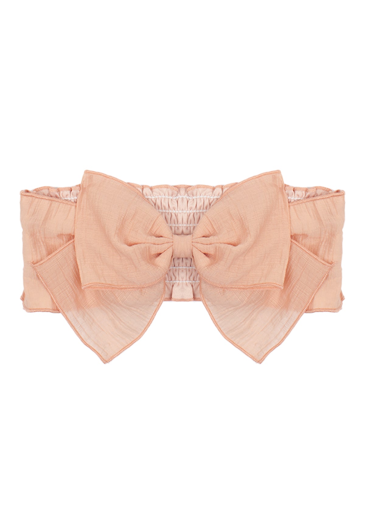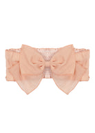 This elegant girl's hair accessory features a large bow in a warm, dusty rose hue. Crafted with a delicate texture, the bow is set on an elasticized band for a secure and comfortable fit.