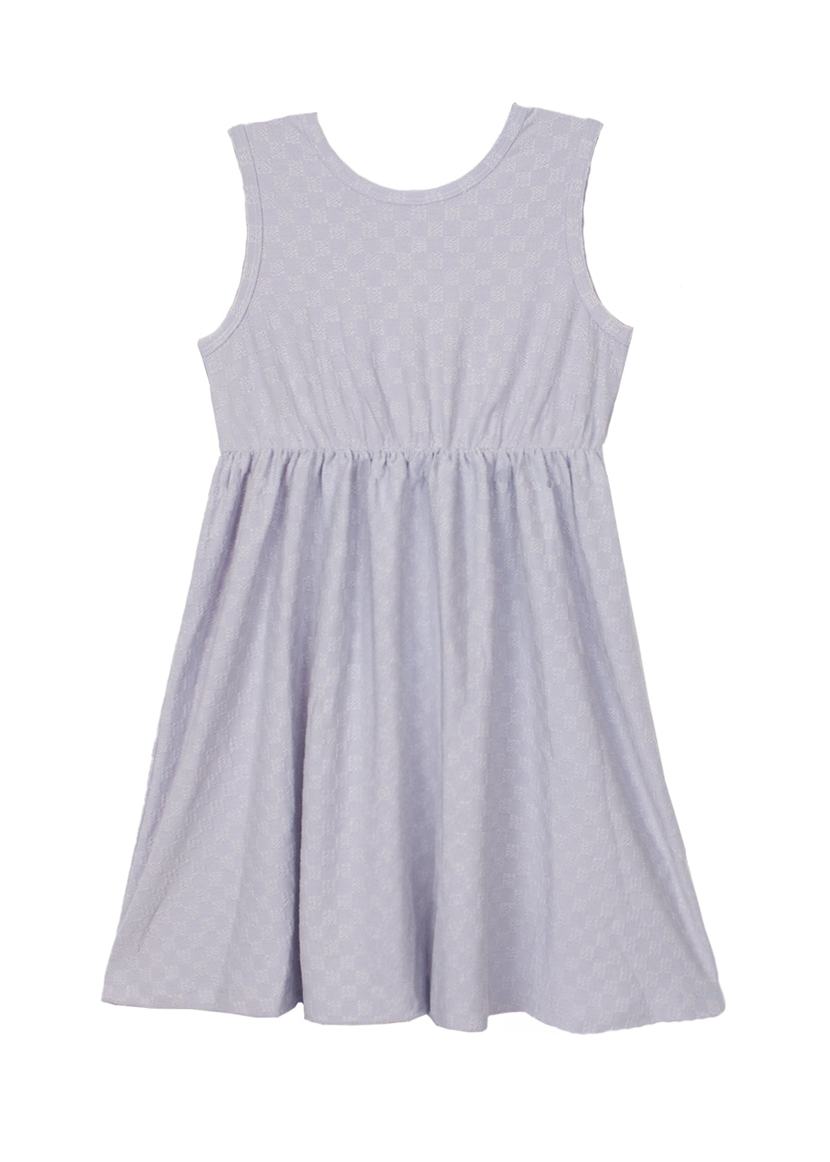 Lovely sleeveless dress for girls in lavender terry cloth with checkered patterns. The dress features a natural wasit fit with amazing bow cutout details on the back.