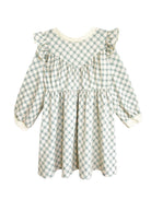 The Lillian Dress is the perfect balance of style and comfort for your little one. Crafted with soft, breathable fabric in a timeless cream and dark green geometric pattern, it is as versatile as it is eye-catching. The ruffled shoulder accents and gently gathered bodice add a playful touch, while the long sleeves with ribbed cuffs ensure a cozy fit. Ideal for everyday wear or semi-formal outings.