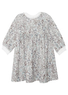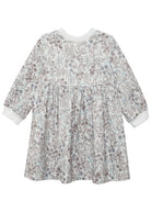The Meadow dress is a timeless addition to any young girl's wardrobe. Featuring a delicate floral pattern all around and the relaxed fit with gathered waist ensure comfort for everyday wear, while the long sleeves and contrasting cuffs add a touch of elegance, making it a versatile choice for the season.