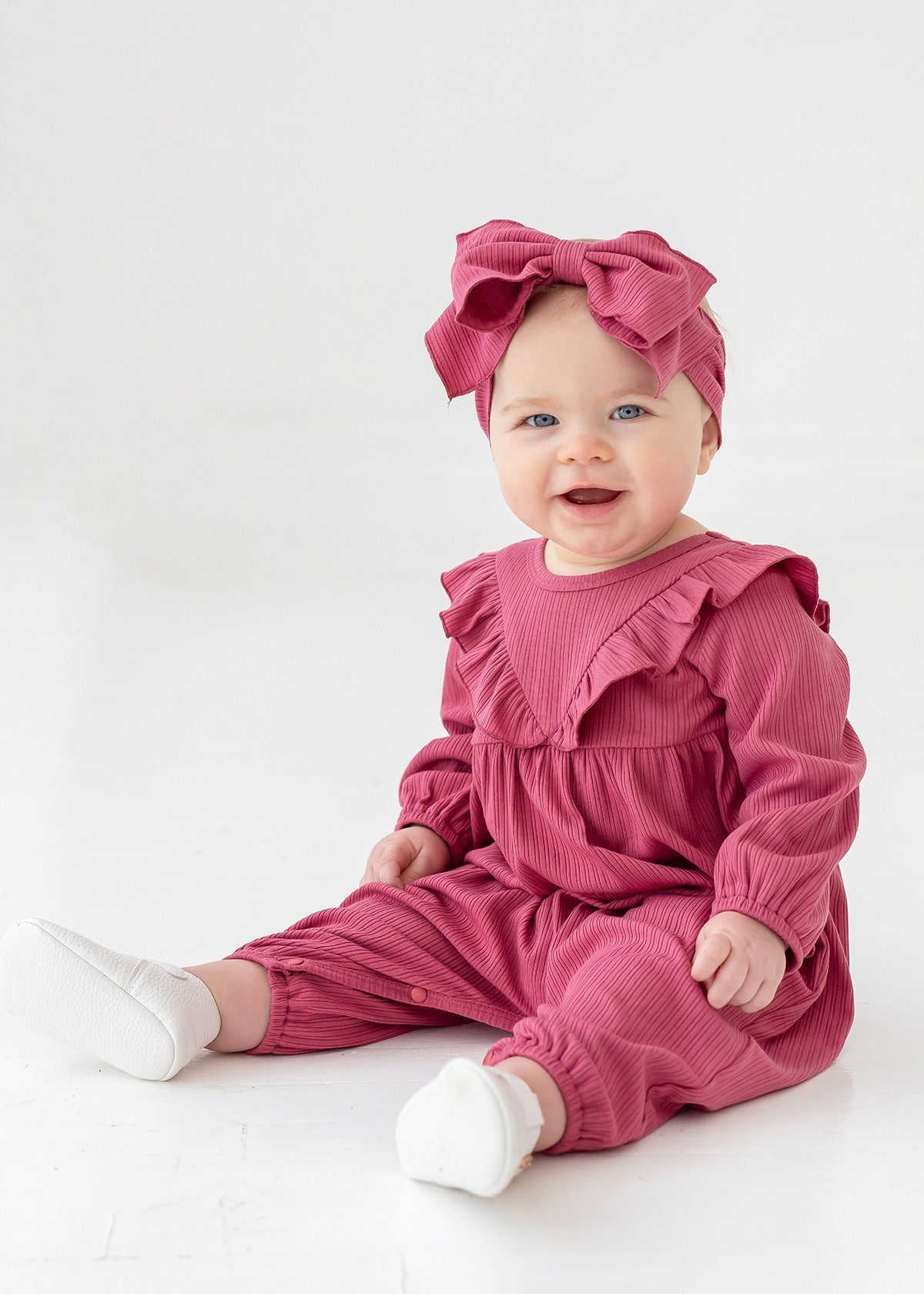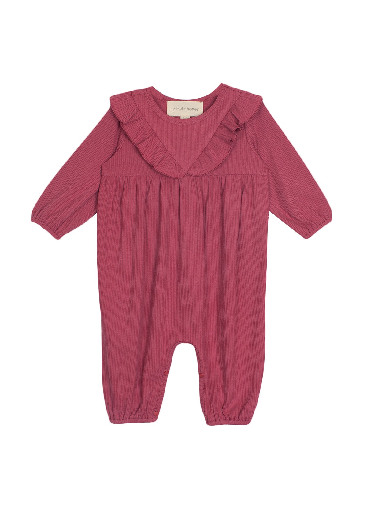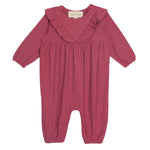 Wrap your little one in comfort and style with the Camilla Romper. Crafted from soft, breathable cotton rib fabric, this charming piece features a unique ruffle collar detail, adding a touch of elegance. Perfect for cozy playdates or cuddle sessions!