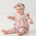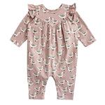Wrap your little one in playful charm with the Ducky in Pink Romper. Designed with a delightful goose pattern against a soft pink backdrop, this one-piece outfit combines style and functionality. Ruffle details on the shoulders add a sweet touch. Perfectly cozy and adorable, it?s a wardrobe essential for your baby girl?s everyday adventures!