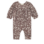 Snuggle up your little one in the Hot Chocolate Romper, adorned with a charming white floral print on a deep chocolate base. This romper, crafted from ultra-soft, stretchy cotton fabric, features an empire waistline detail and a comfortable fit for all-day play.