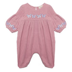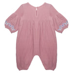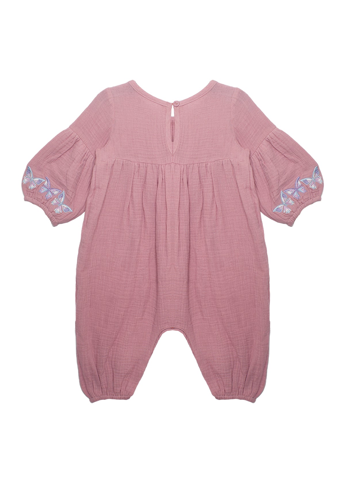The Lyla Romper is the perfect blend of comfort and elegance for your little one. Its soft pink fabric is designed for all-day wear, while the delicate embroidered butterflies across the chest and sleeves add a sweet, whimsical touch. The gathered detail at the chest ensures a loose, breathable fit, keeping your baby cozy and free to move