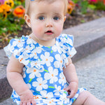 Introducing the Mabel and Honey romper, a delightful piece for sunny days. The romper features playful flutter sleeves and is made from soft, breathable cotton for ultimate comfort. Adorned with a cheerful blue and white floral print, it brings a burst of color and charm to any occasion.
