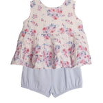 This Mabel and Honey Pastel Floral 2 PC Short Set is a breath of fresh air with its sleeveless design and soft, blossoming print. Perfect for those breezy, sunny days out.