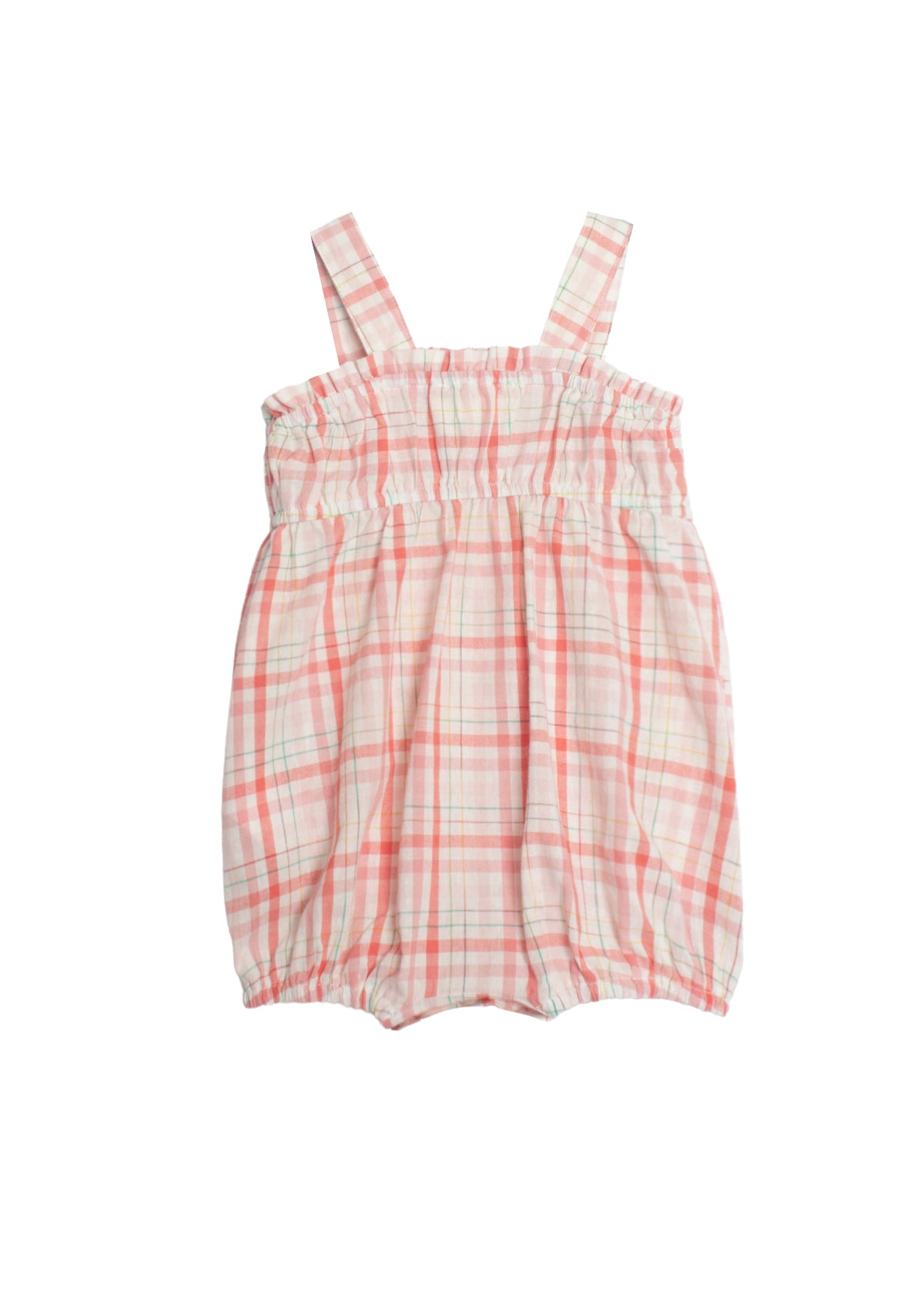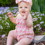 Dress your darling in Mabel and Honey's charming Sleeveless Romper, perfect for summertime play. This piece is lovingly crafted from a soft, breathable cotton fabric, ensuring all-day comfort. It features a delightful pink and white gingham pattern, accented with ruffled straps for a touch of sweetness. Ideal for sunny adventures or picture-perfect picnics.