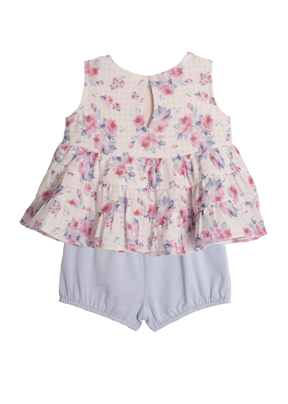 This Mabel and Honey Pastel Floral 2 PC Short Set is a breath of fresh air with its sleeveless design and soft, blossoming print. Perfect for those breezy, sunny days out.