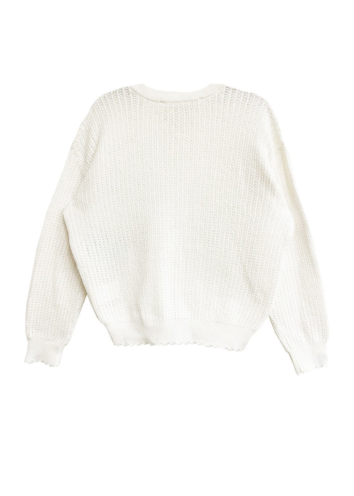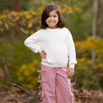 Wrap yourself in cozy sophistication with the Bow-tastic Sweater. Featuring a serene white hue and a soft, ribbed knit texture, this sweater blends timeless design with everyday comfort. Its relaxed fit, long sleeves, and crew neck make it perfect for layering or wearing solo on breezy days. The subtle scallop details along the hem add an extra stylistic touch, effortlessly elevating your little on'es casual wardrobe staples.