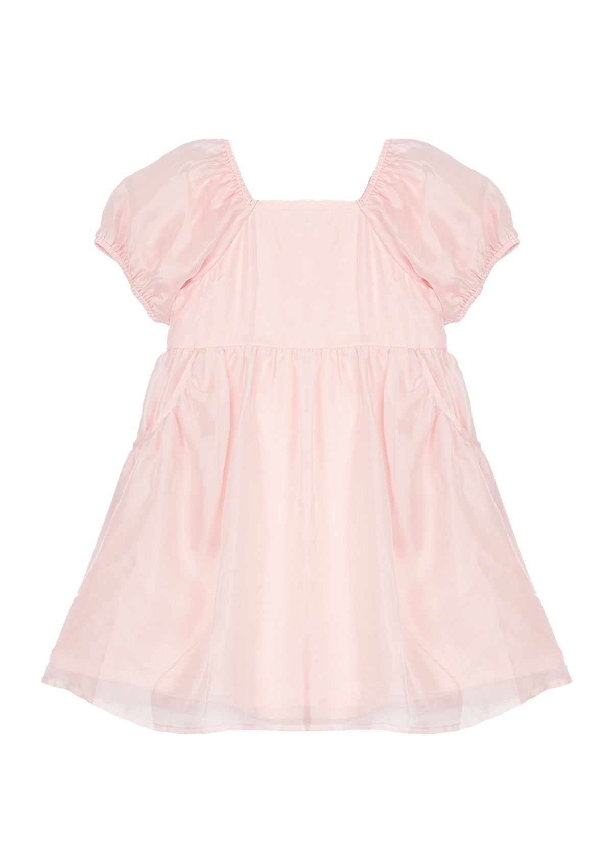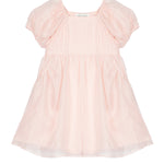 This enchanting girl's dress features a delicate, airy fabric in a soft pink hue. The puff sleeves and gathered waist create a charming silhouette, perfect for special occasions. The lightweight material adds a touch of elegance, while the flowing design ensures comfort.