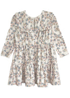 The Sadie Dress is a beautiful long-sleeved choice for your little one. Designed with a tiered silhouette and enhanced by delicate ruffled details, it offers a sweet, timeless look. The light cream backdrop, adorned with soft blue flowers, green leaves, and subtle brown stems, creates a fresh and elegant look. Made from soft, breathable fabric, it promises comfort, effortless style, and ease of movement for your baby girl.