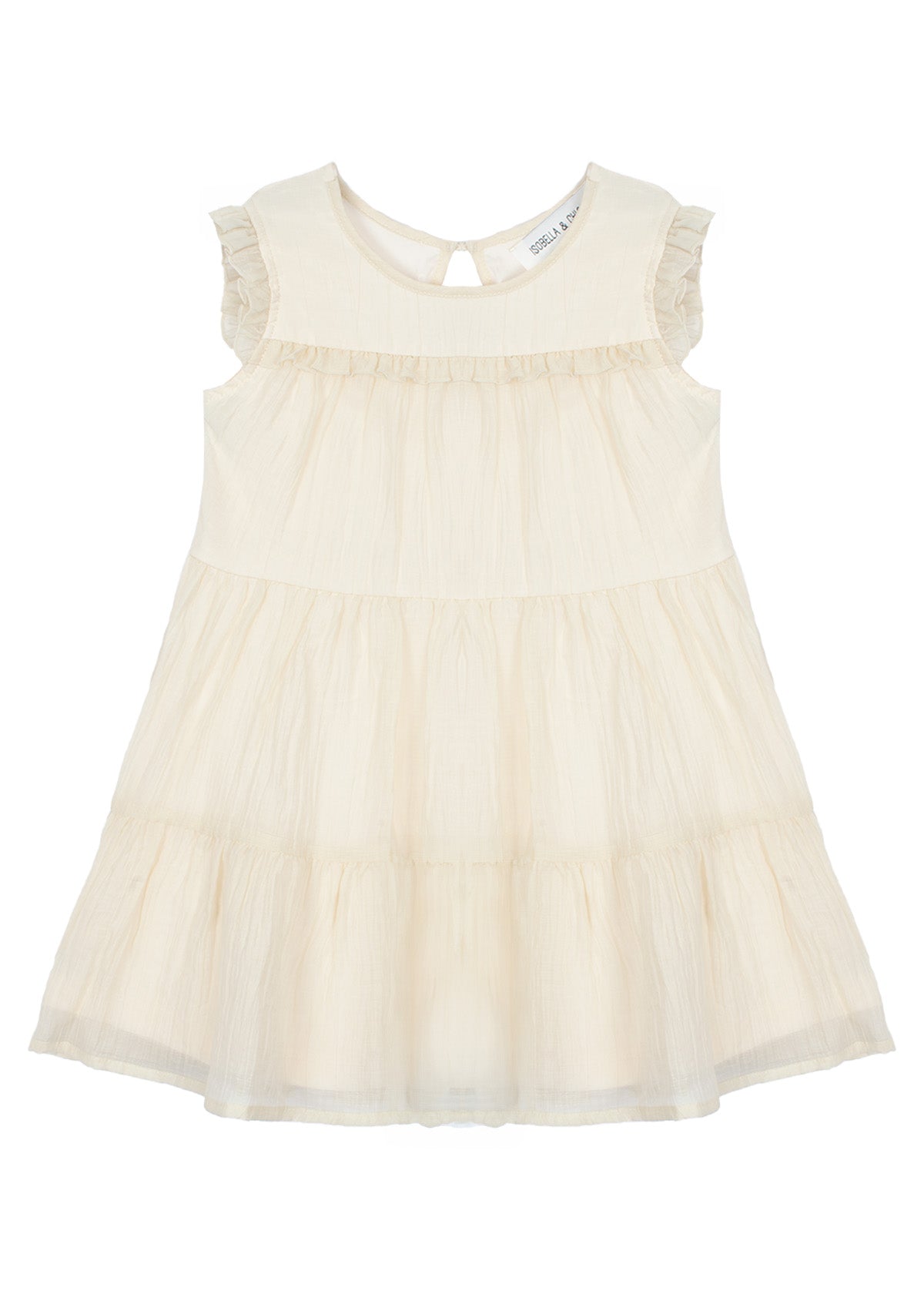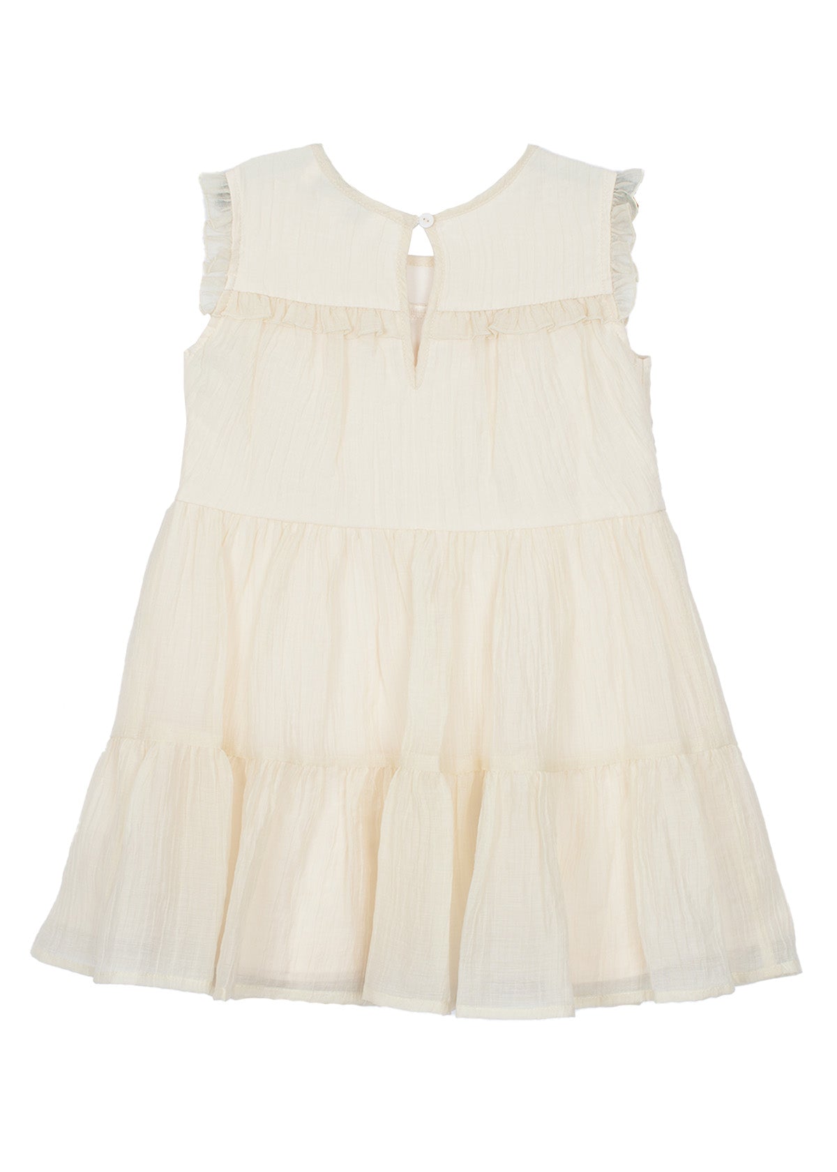 This girl's dress features soft airy fabric. It has delicate ruffle details and tiered layered skirt for a soft, flowing silhouette.