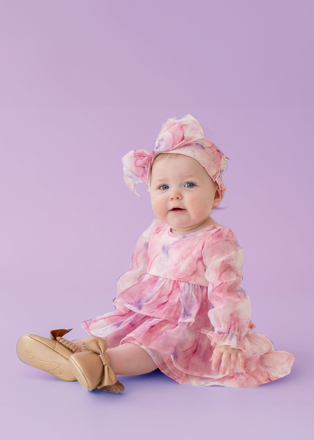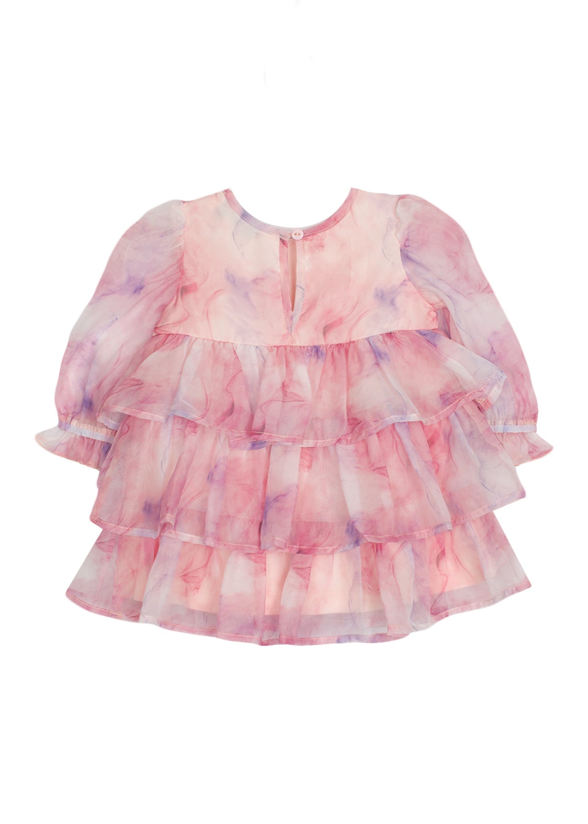 Step into a dream with the Berry Swirl Dress, featuring a whimsical blend of pink and purple hues in a watercolor print. Made from light, airy chiffon, this dress boasts a cascade of ruffled tiers that dance with every twirl.
