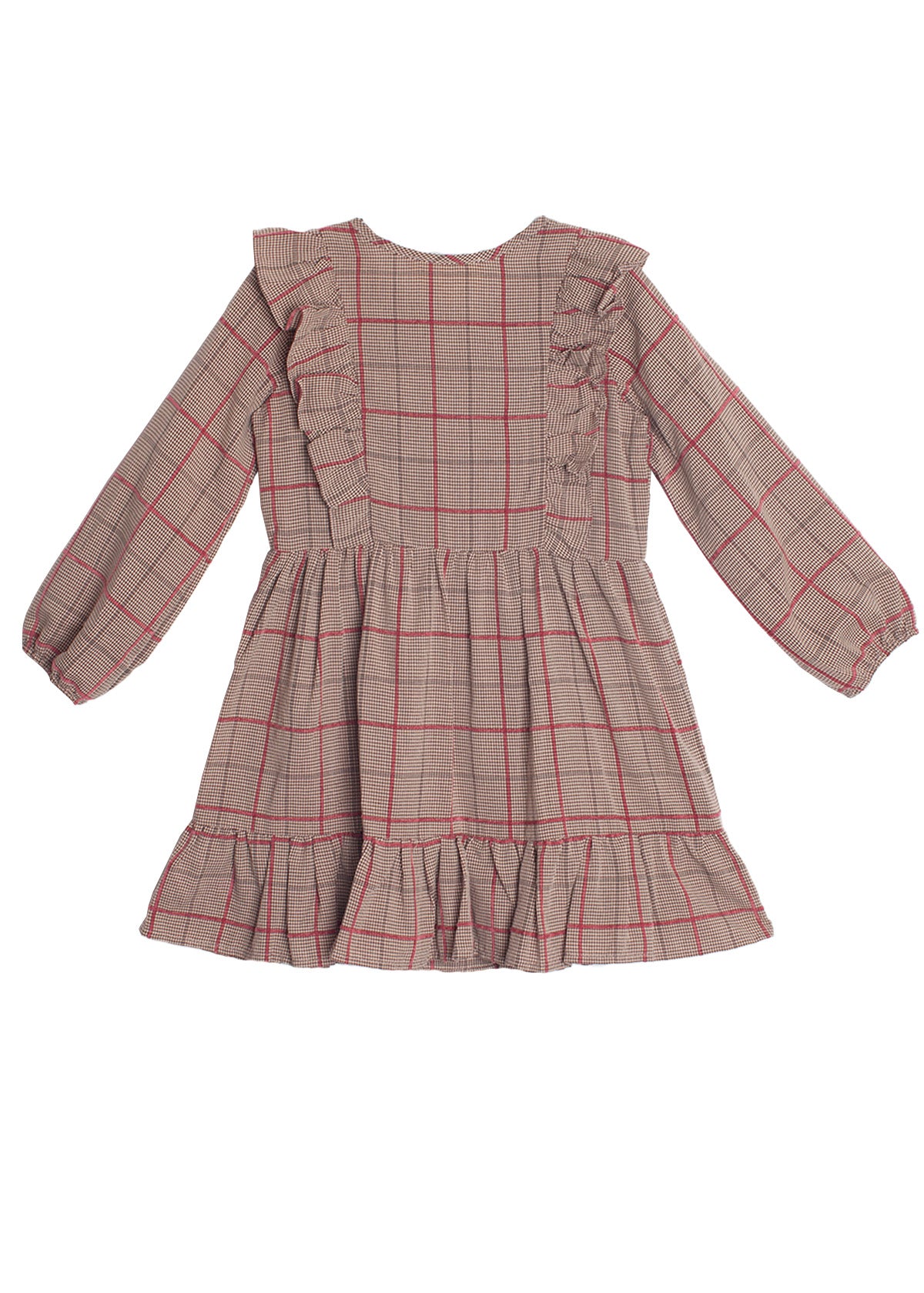 The Hazel Dress combines traditional elements with playful details, making it a great choice for school events, weekend outings, or family gatherings. This single-tier dress is enhanced with ruffle shoulders that add a charming flair.