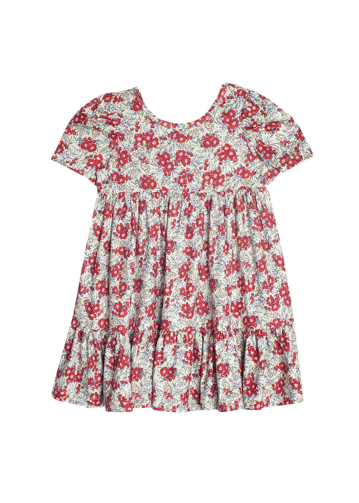 This charming girl's dress features a soft, breathable fabric adorned with a vibrant floral print. The dress is designed with short sleeves, single-tier detail, and a gathered waist, creating a flowy and comfortable silhouette. Perfect for both casual outings and special occasions, this dress combines style and comfort effortlessly.