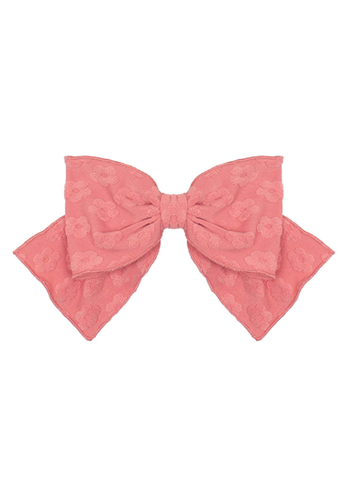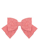 This elegant girl's hair accessory features a large bow in a warm, dusty rose hue. Crafted with a delicate texture, the bow is set on an elasticized band for a secure and comfortable fit.