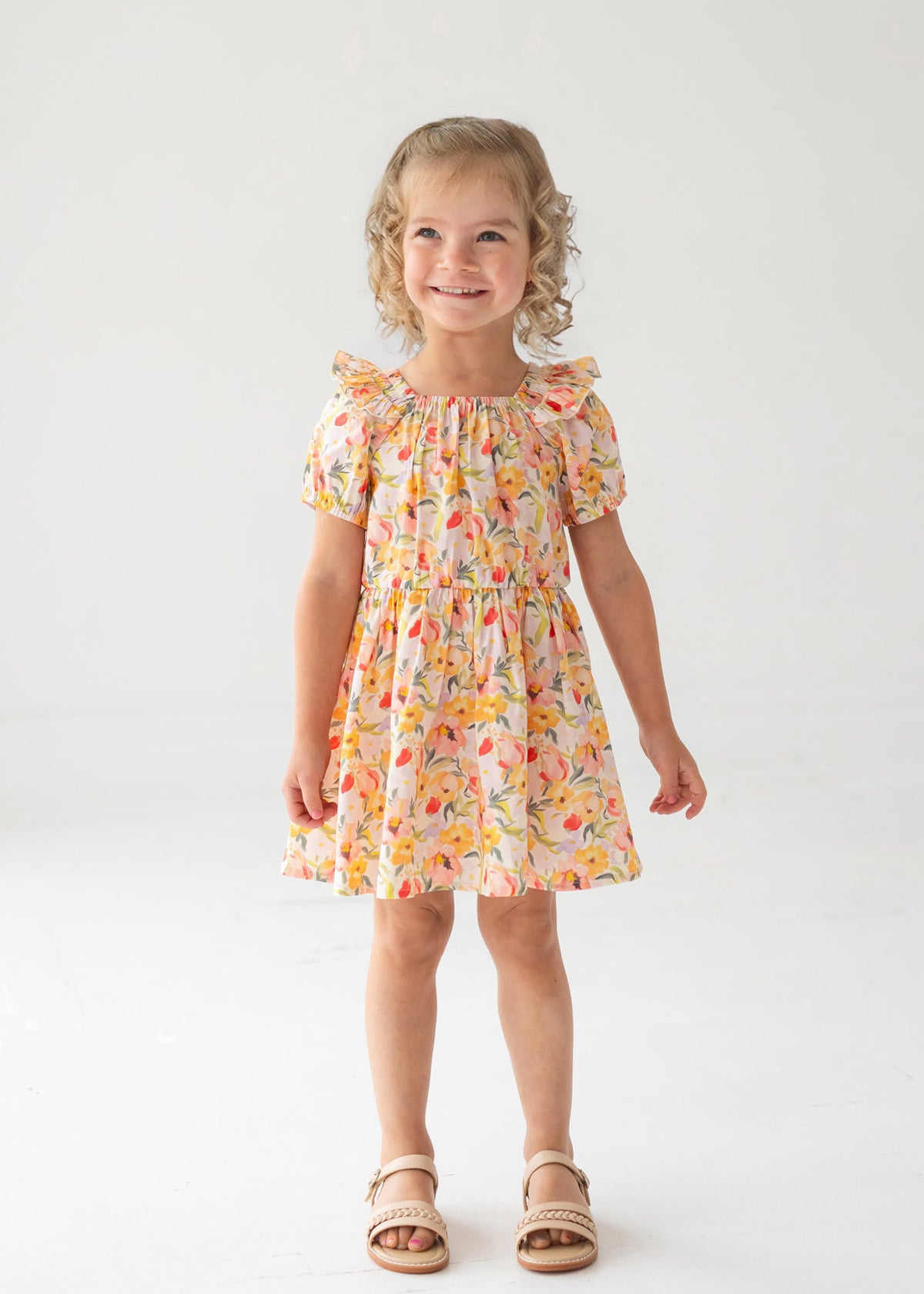 Blooming Florals Short Gathered Sleeve Dress