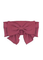 This adorable hair accessory features a rich, textured fabric in a deep berry hue, perfect for adding a pop of color to any outfit.