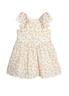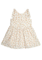 Experience the allure of simplicity with this sleeveless natural waist dress by Mabel and Honey. Crafted from a delicate cotton muslin, it features a dainty floral print in a soft ivory palette. Gentle ruffles at the shoulders add a touch of whimsy, perfect for any casual or festive occasion.